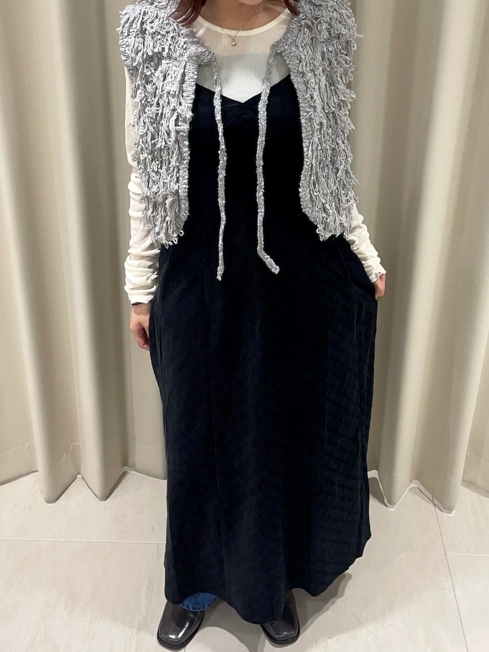 今回は、キャミワンピースにデニムとビスチェを加えてみました!