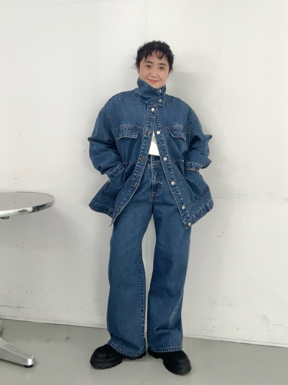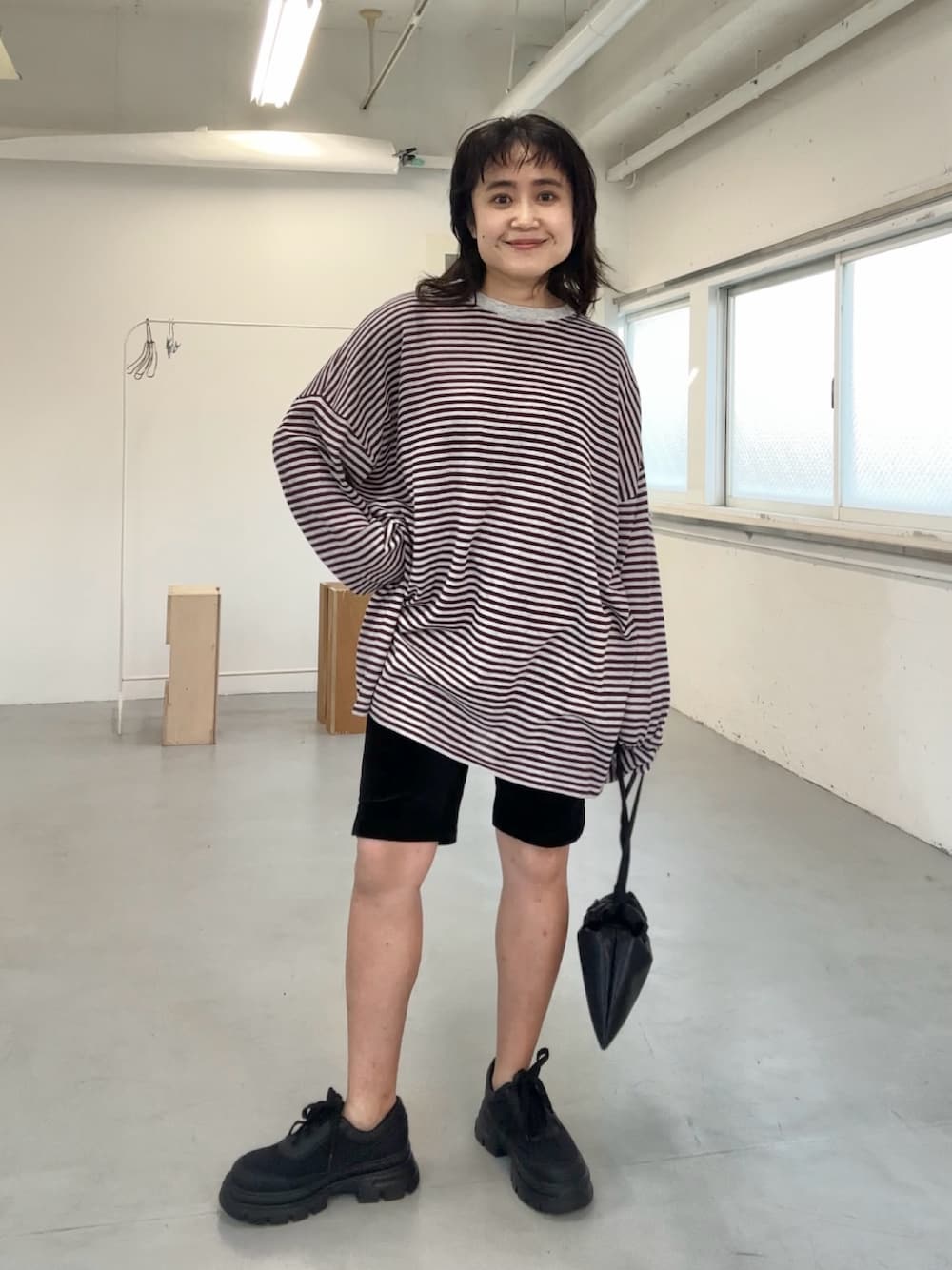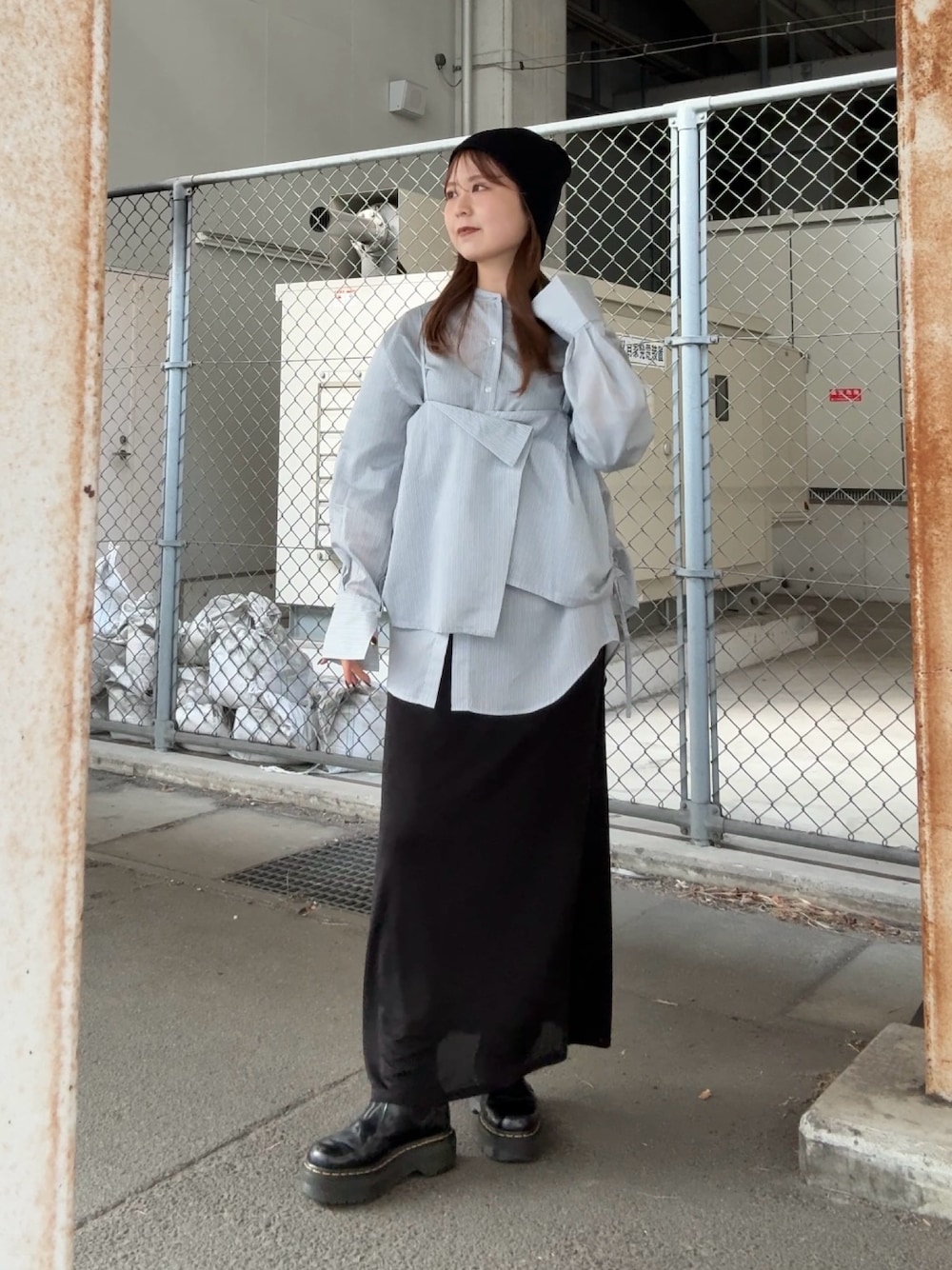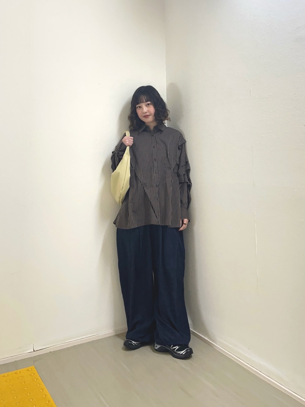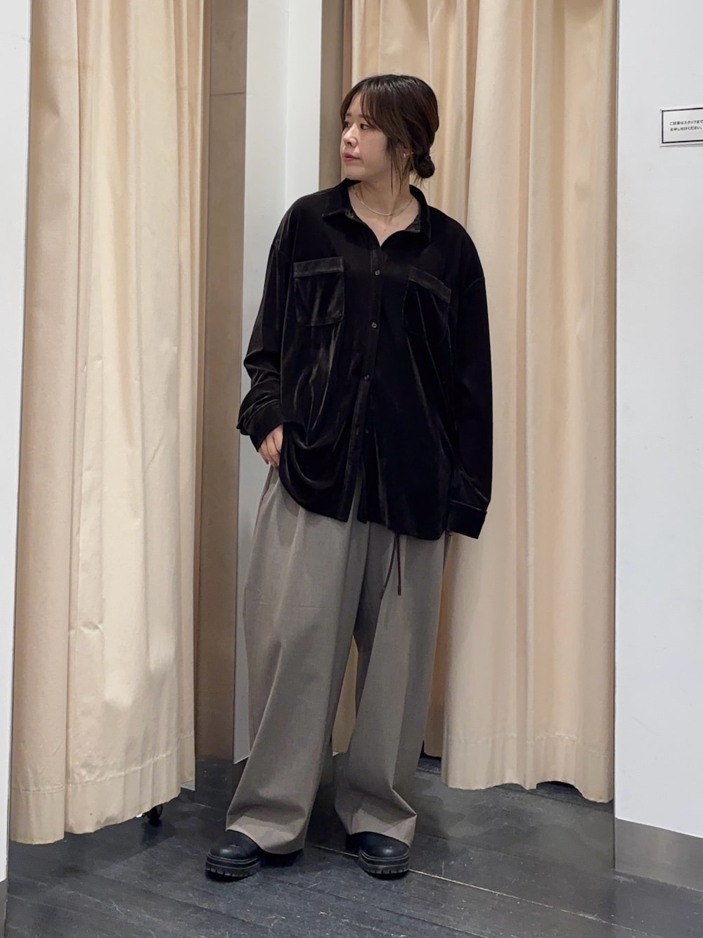 ブラックのブラウスとブラウンのポーチ付きベルトで大人っぽく締めました!