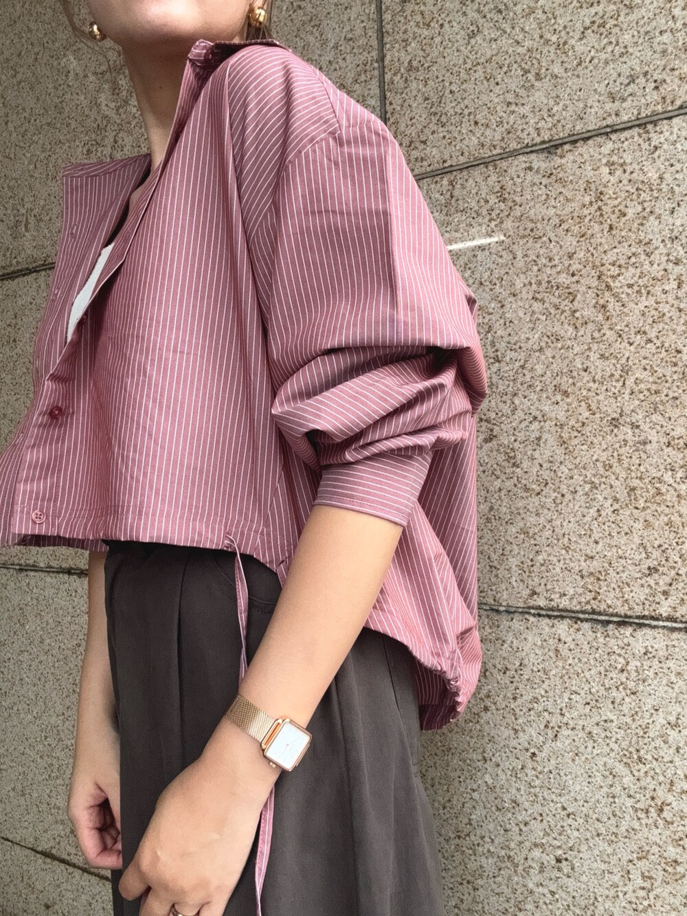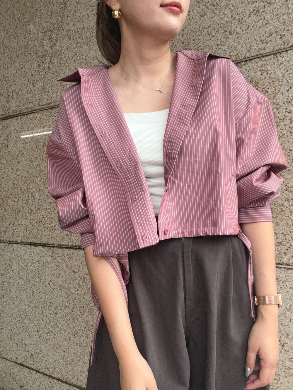 ショート丈のストライプシャツが