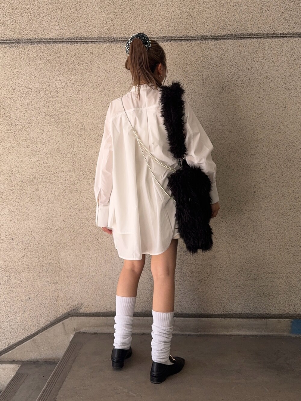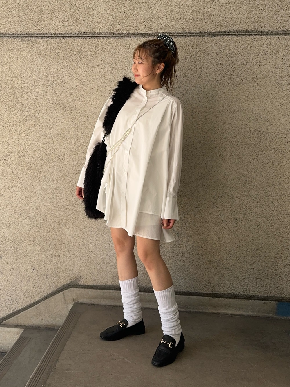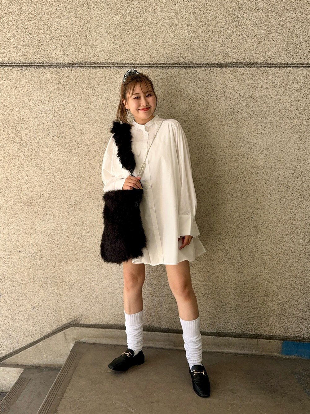 ワンピースとファーバッグが