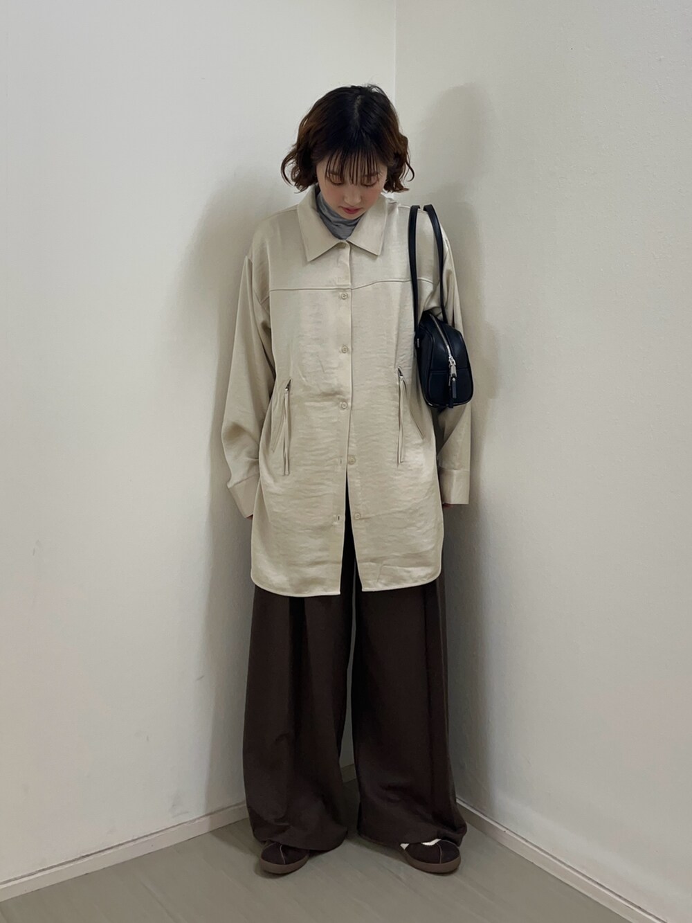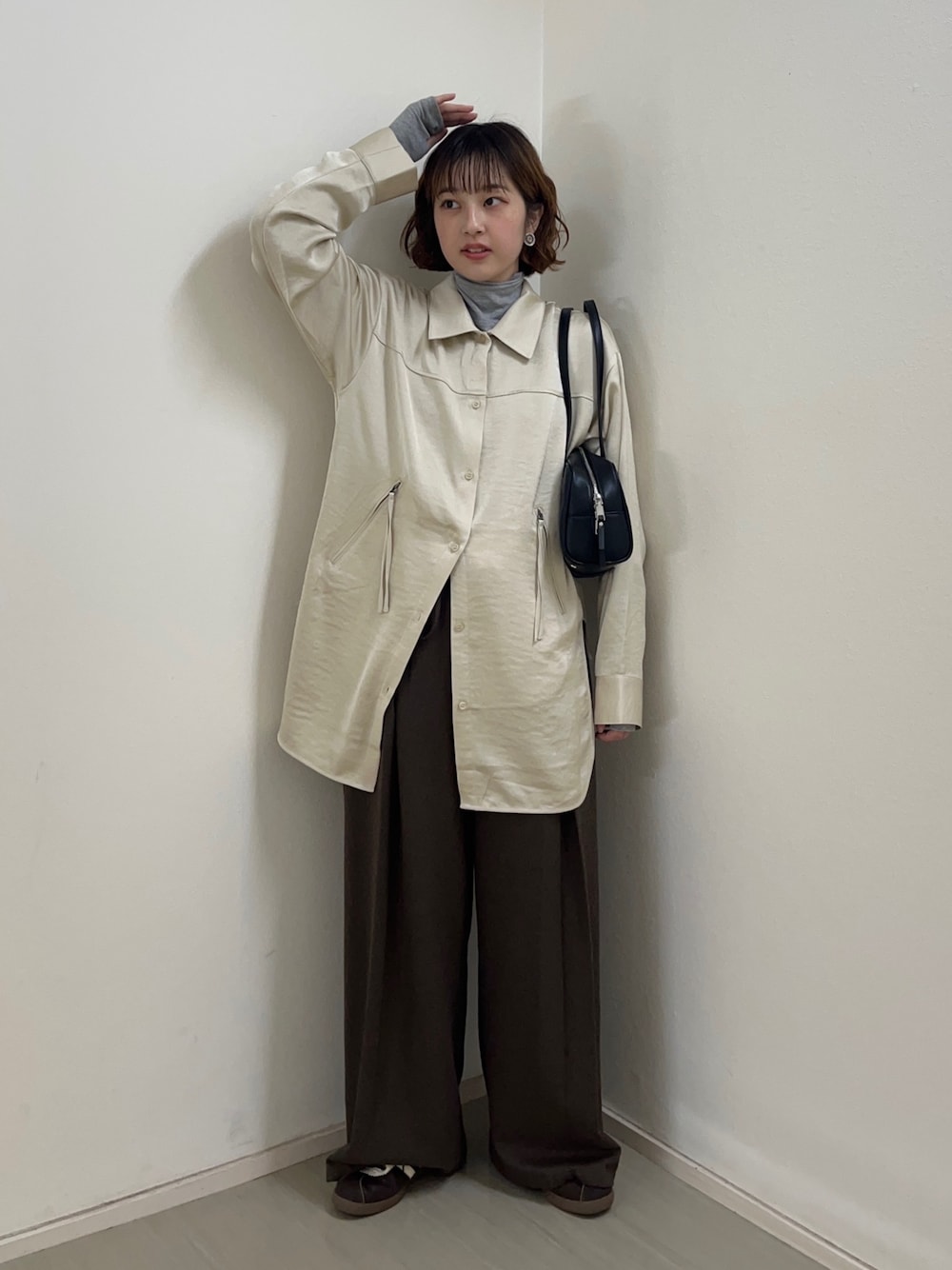 サテンロングシャツ