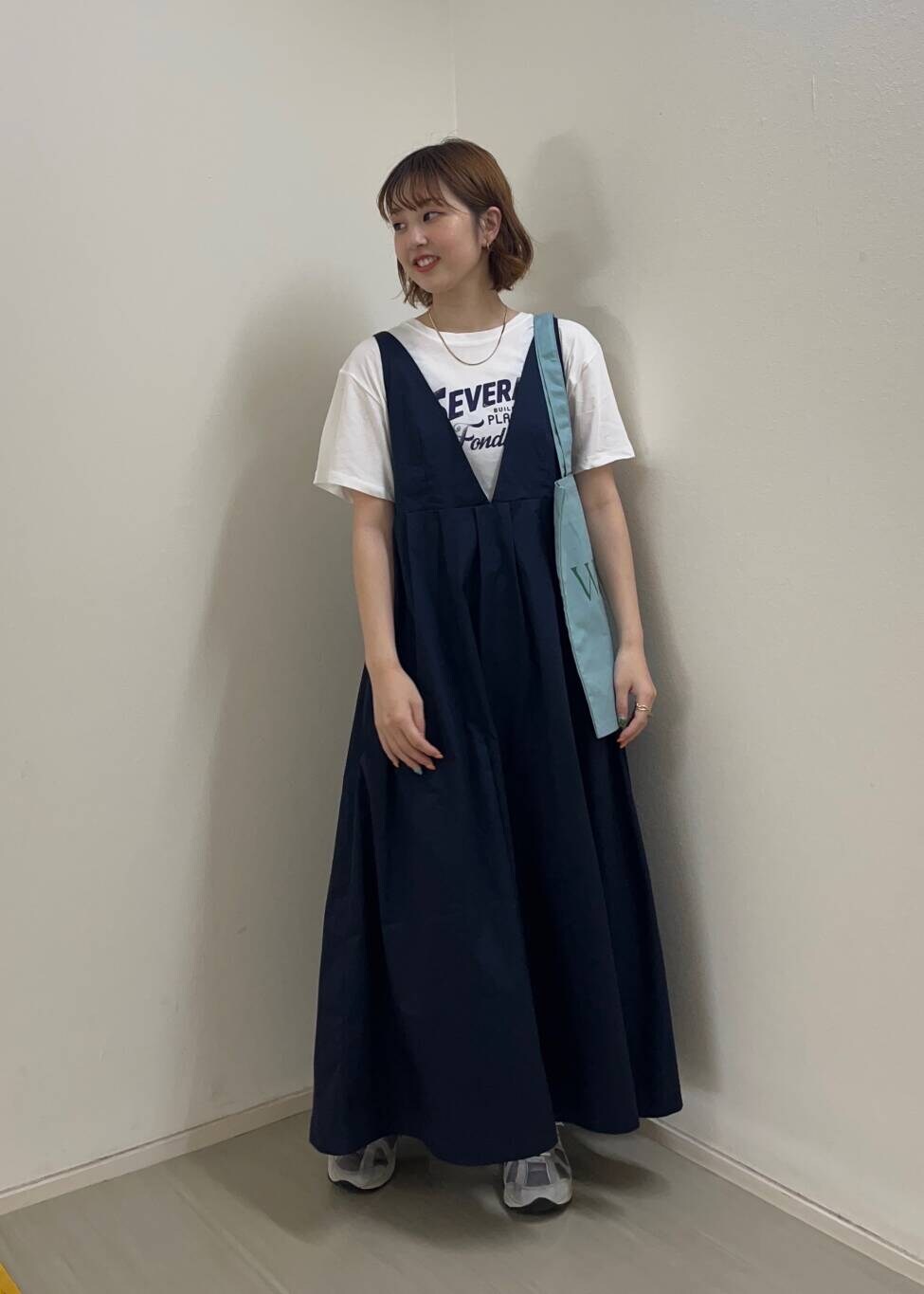 私はTシャツとスニーカーでカジュアルに着てみました!