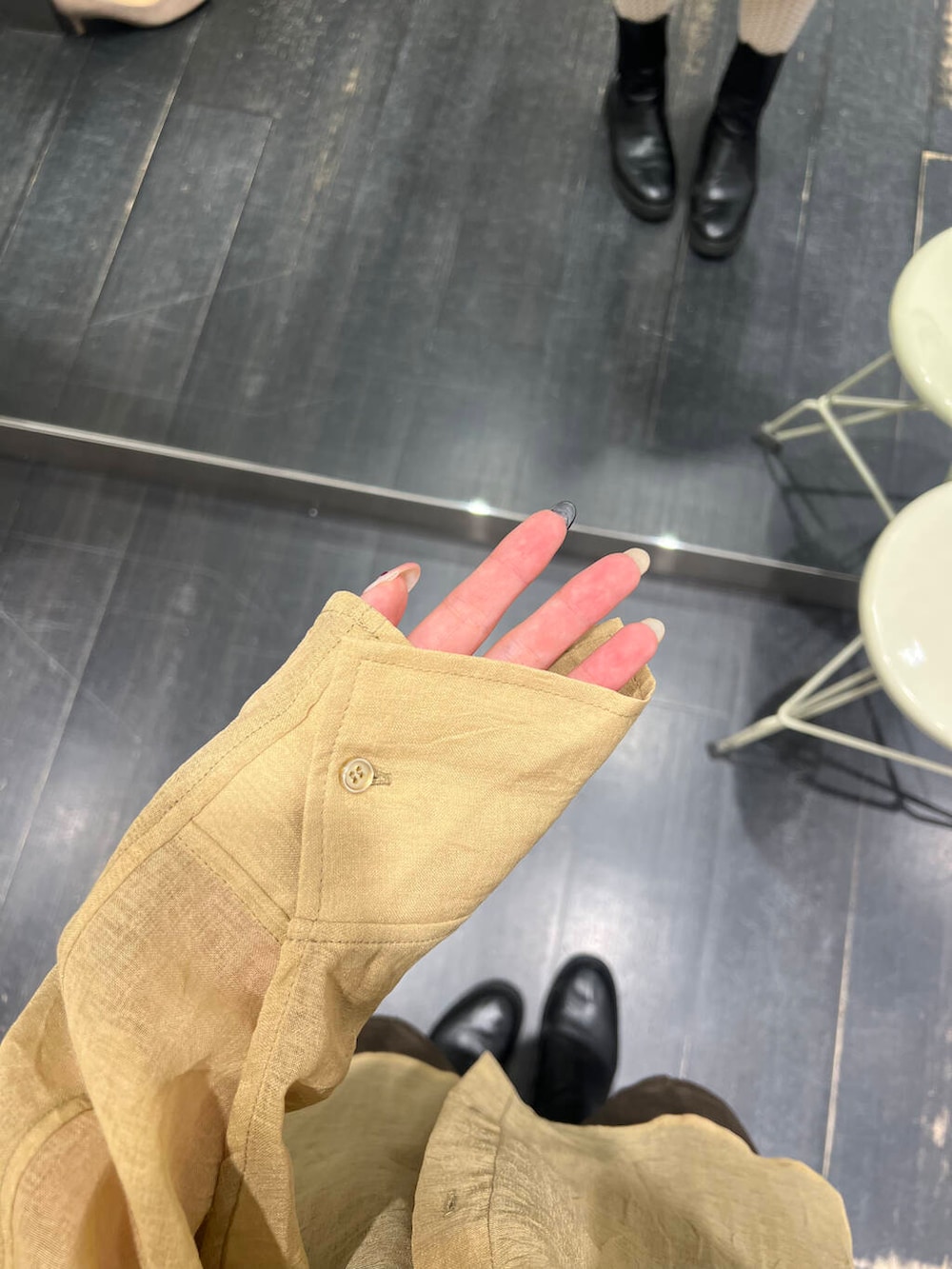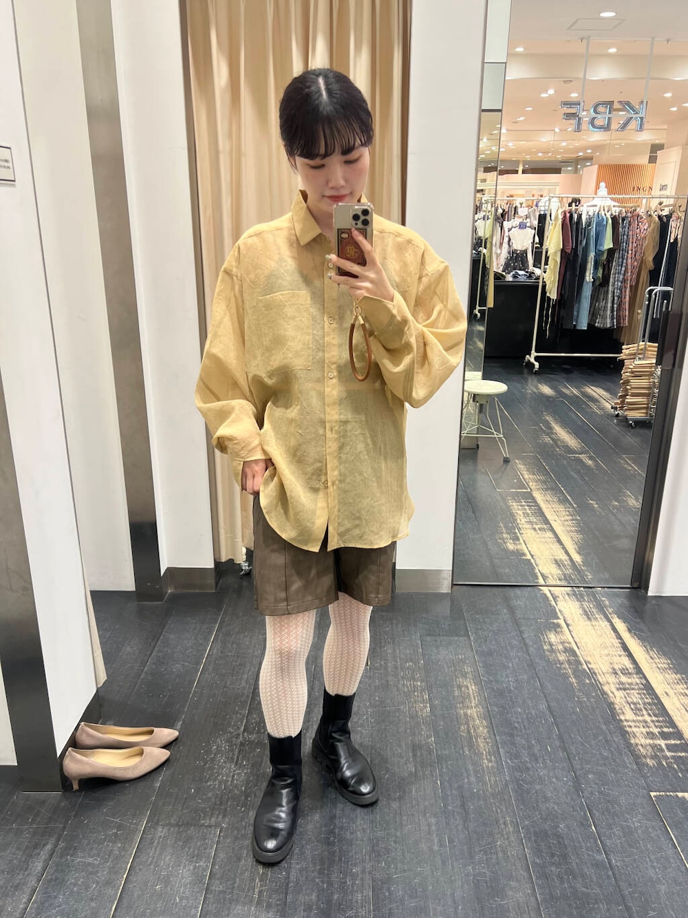 ショートパンツにレースタイツで合わせて、トップスはシアーシャツで大人っぽく合わせました!