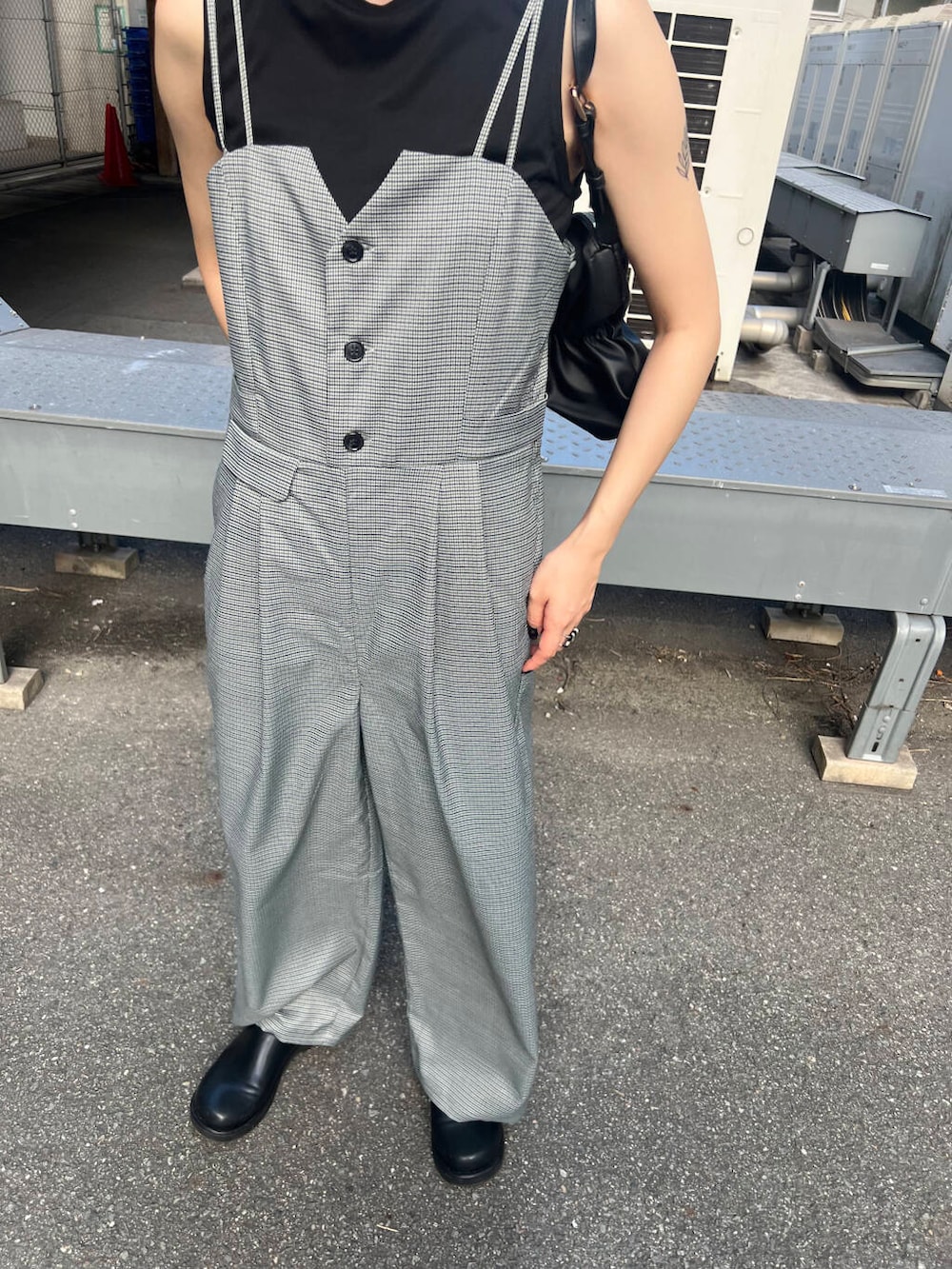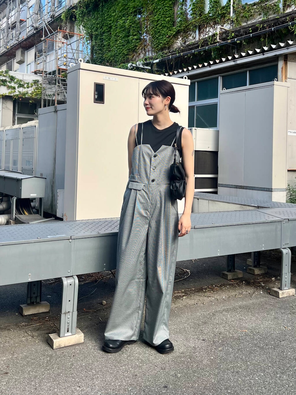スッキリしたシルエットで、スタイルアップで着れるサロペットです!