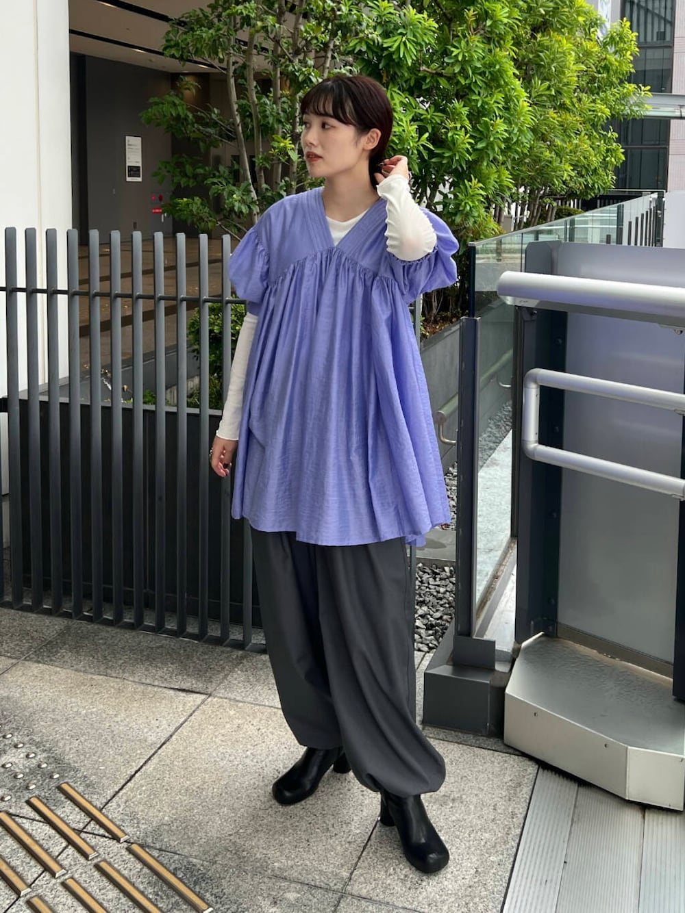 シアーのインナーとブーツの合せで一気に秋っぽく!