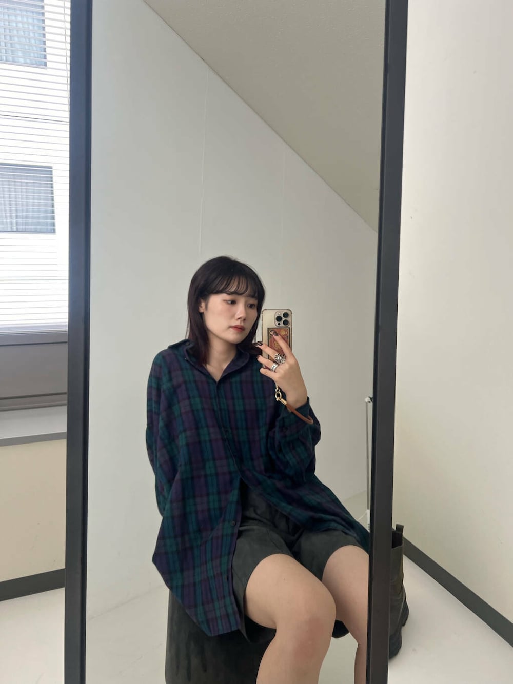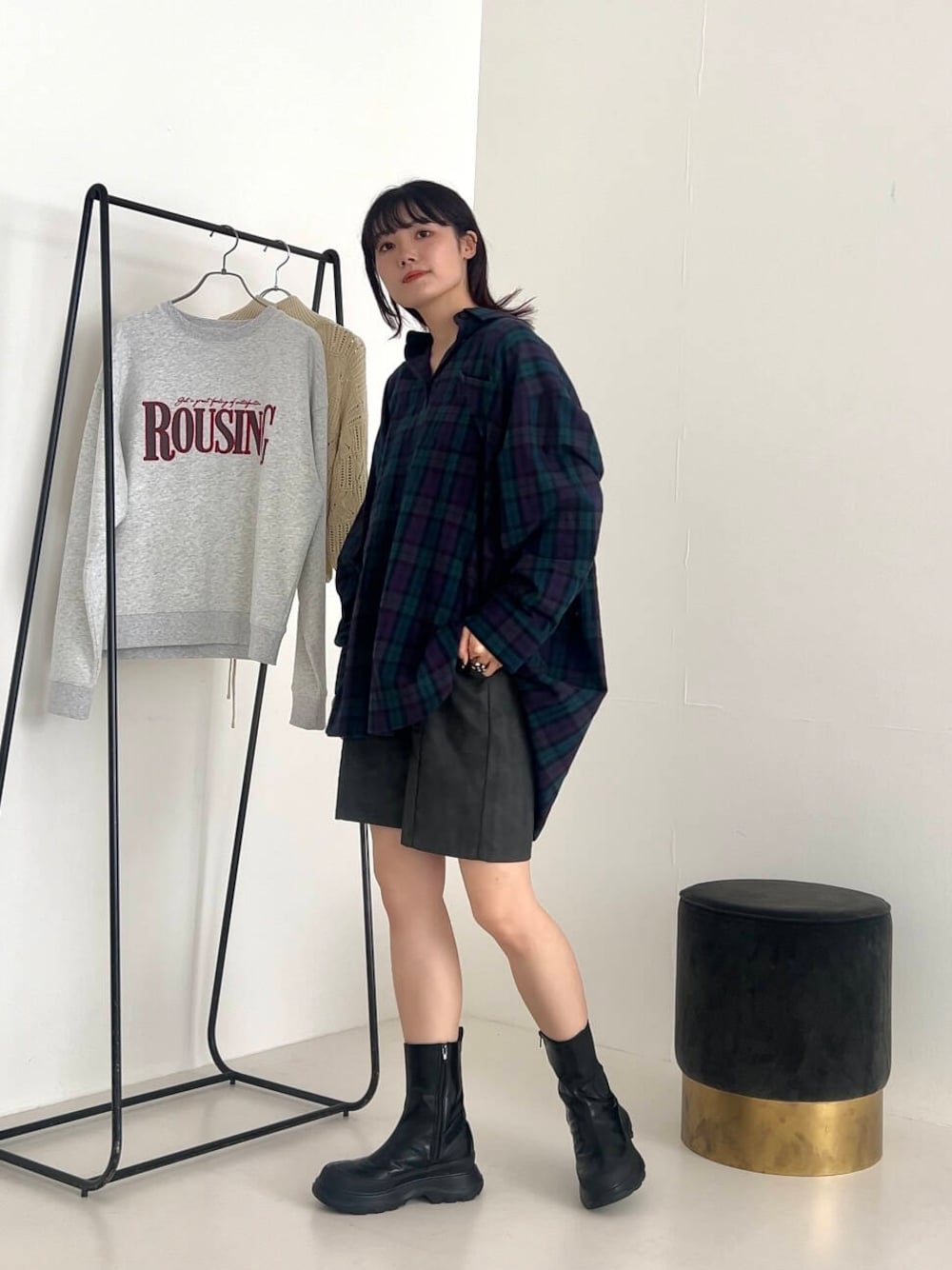 大きめなチェックにルーズなサイズ感でゆったり着ていただけます!