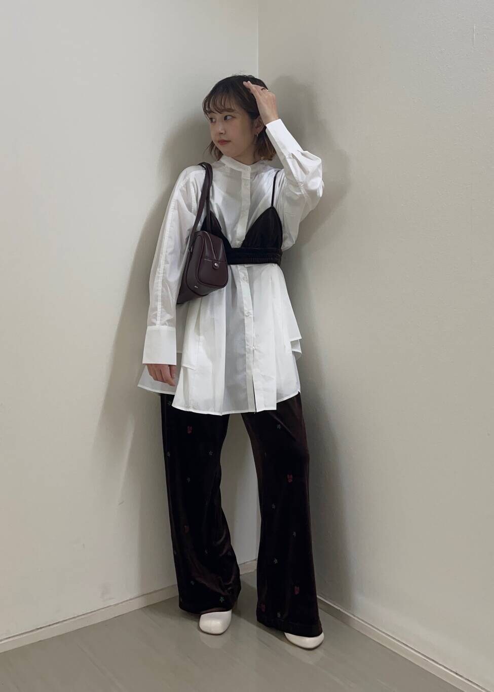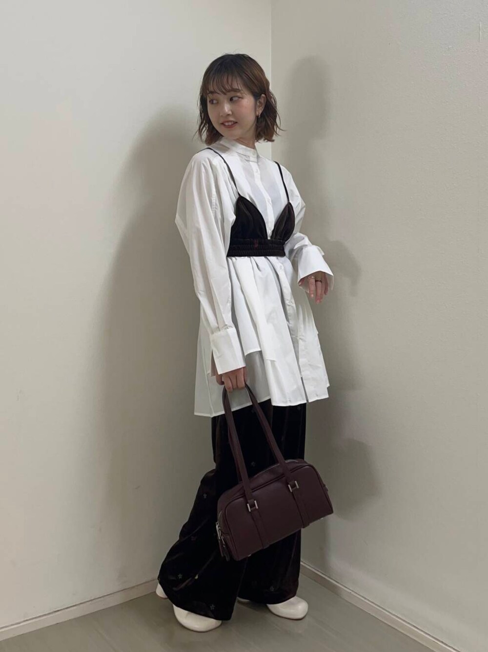 いつものコーデにプラスするだけで一気にオシャレ見えするセットアップで着れるブラはミニシャツワンピースと合わせてみました!