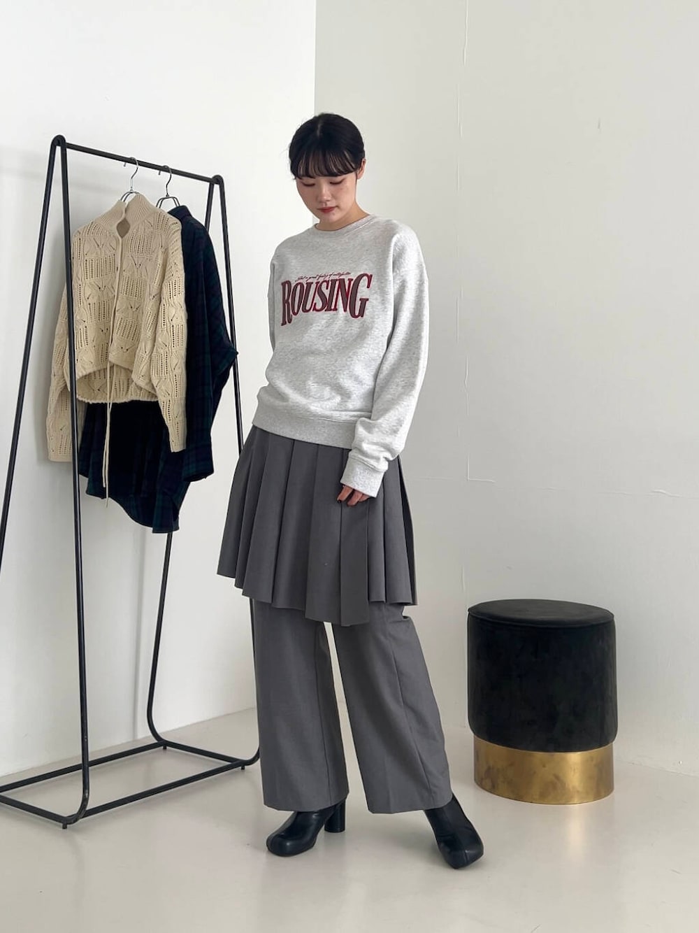スカートとパンツは別々で使えるので沢山着回せますし、合わせて着るだけでトレンド感のあるコーデに!