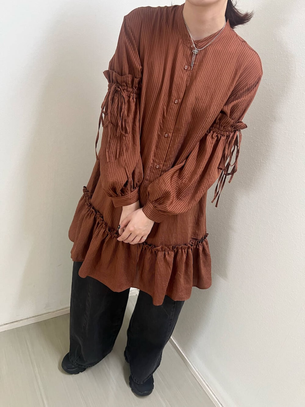 ミニワンピに太めなデニムで合わせて、甘めカジュアルに着ました!