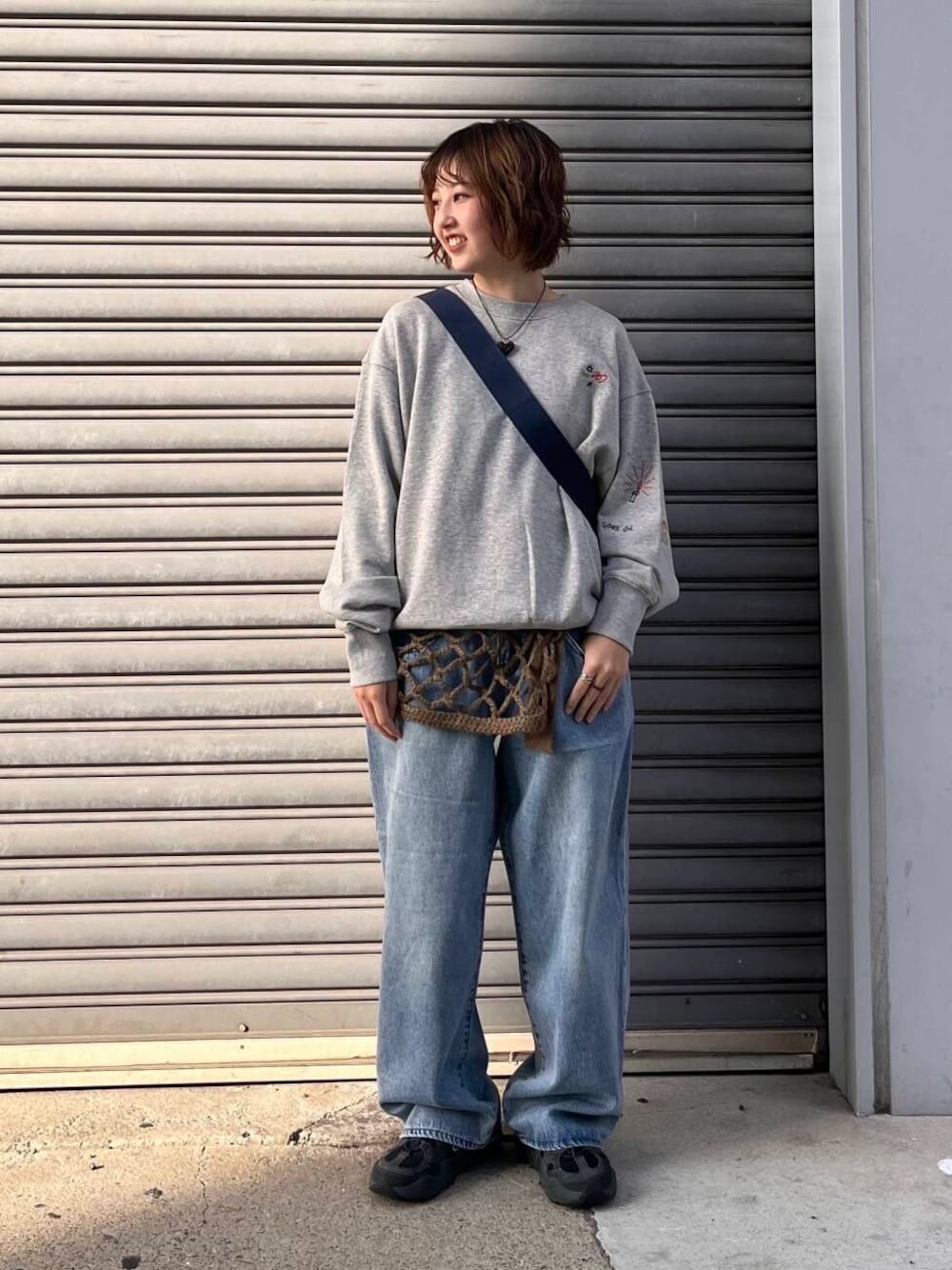 スウェットにデニムのラフコーデにマルチWAYで使えるニットパーツをプラスするだけで一気にオシャレ見えします!