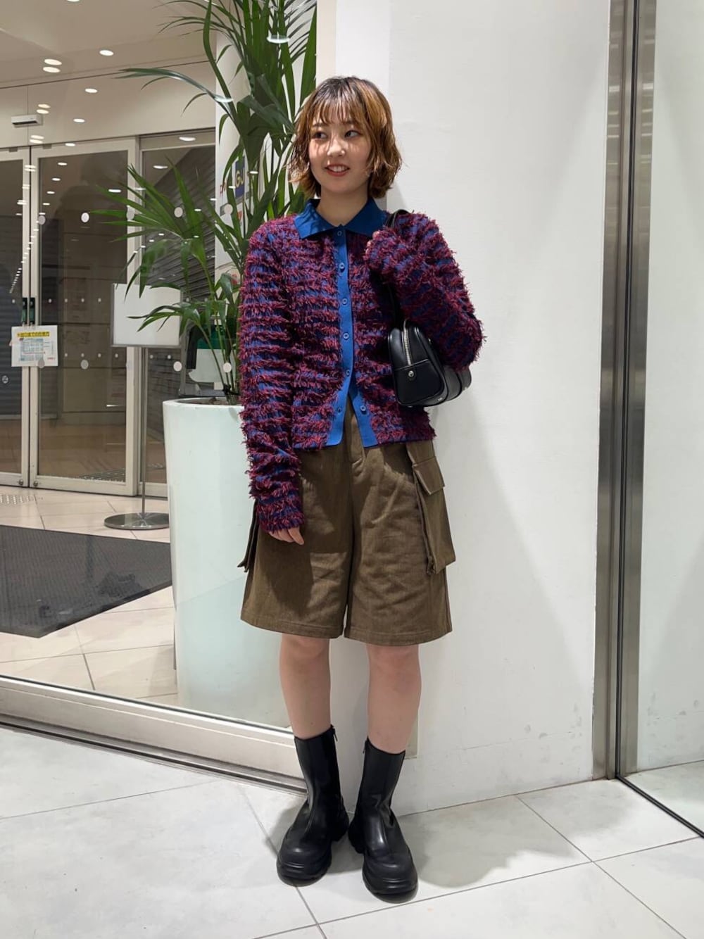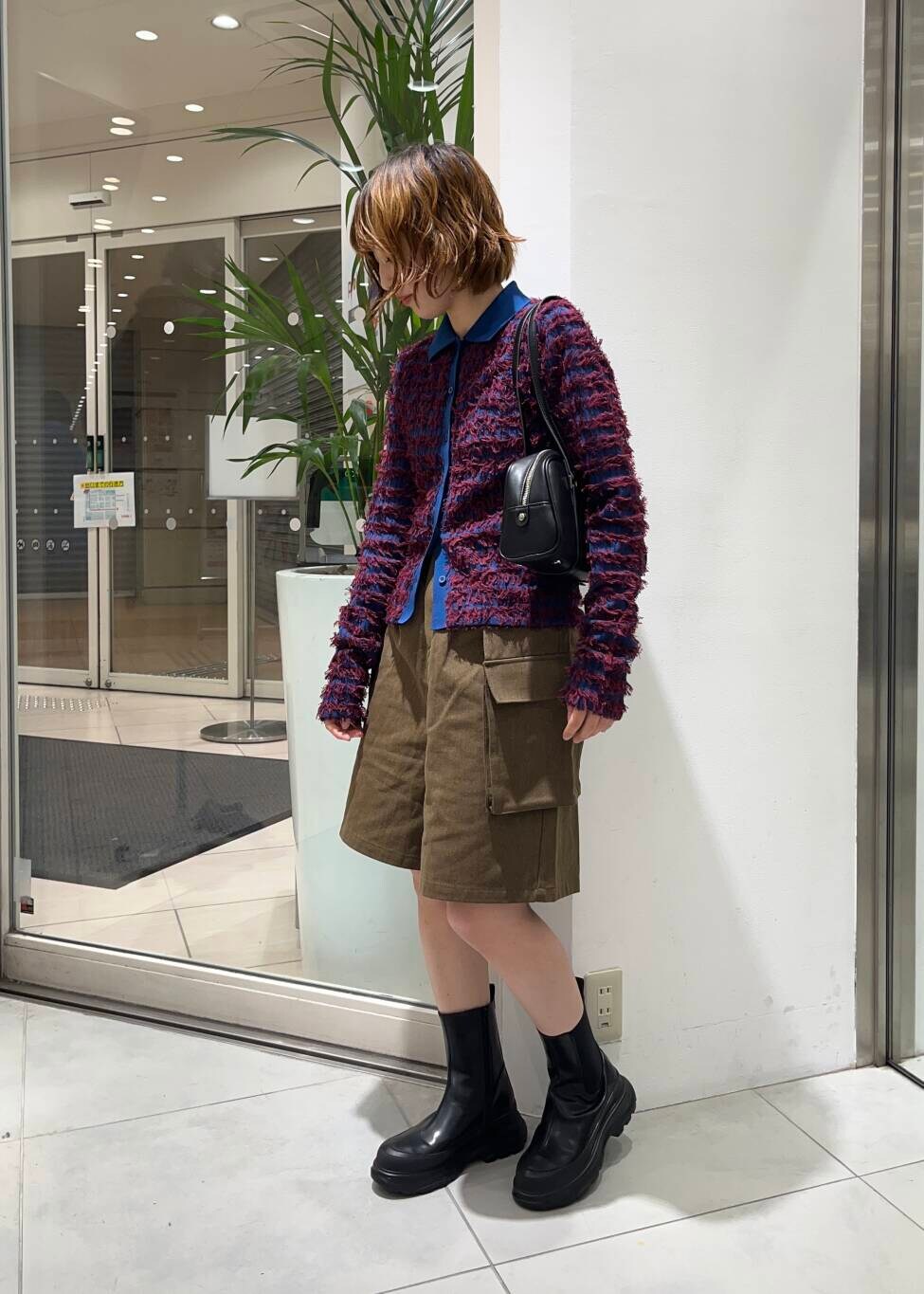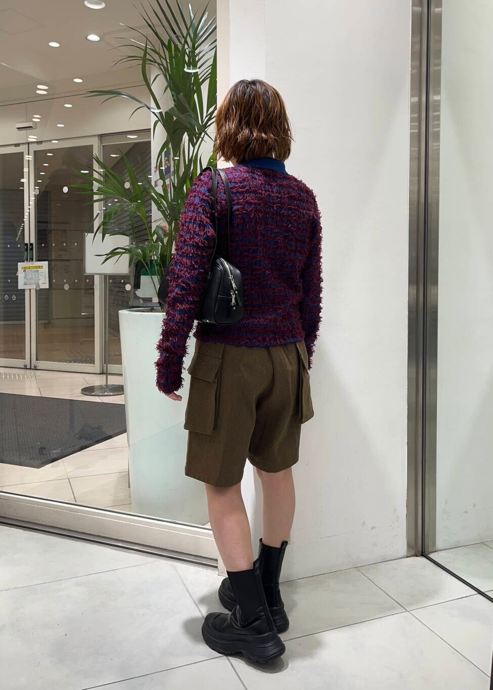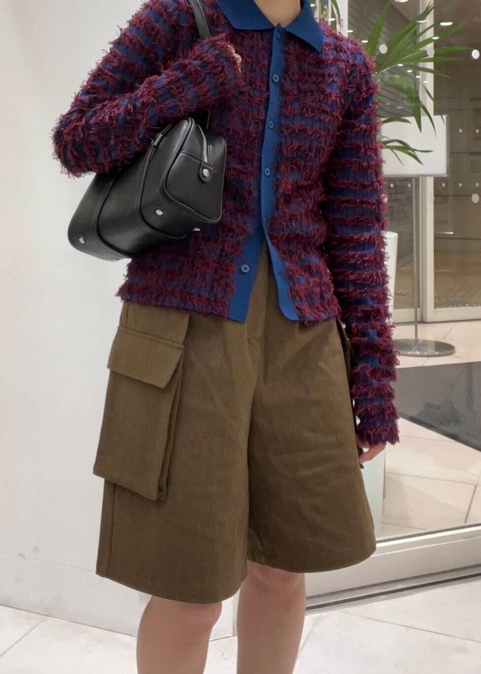 ポケットがアクセントになっているのでコンパクトなニットと合わせて見ました!