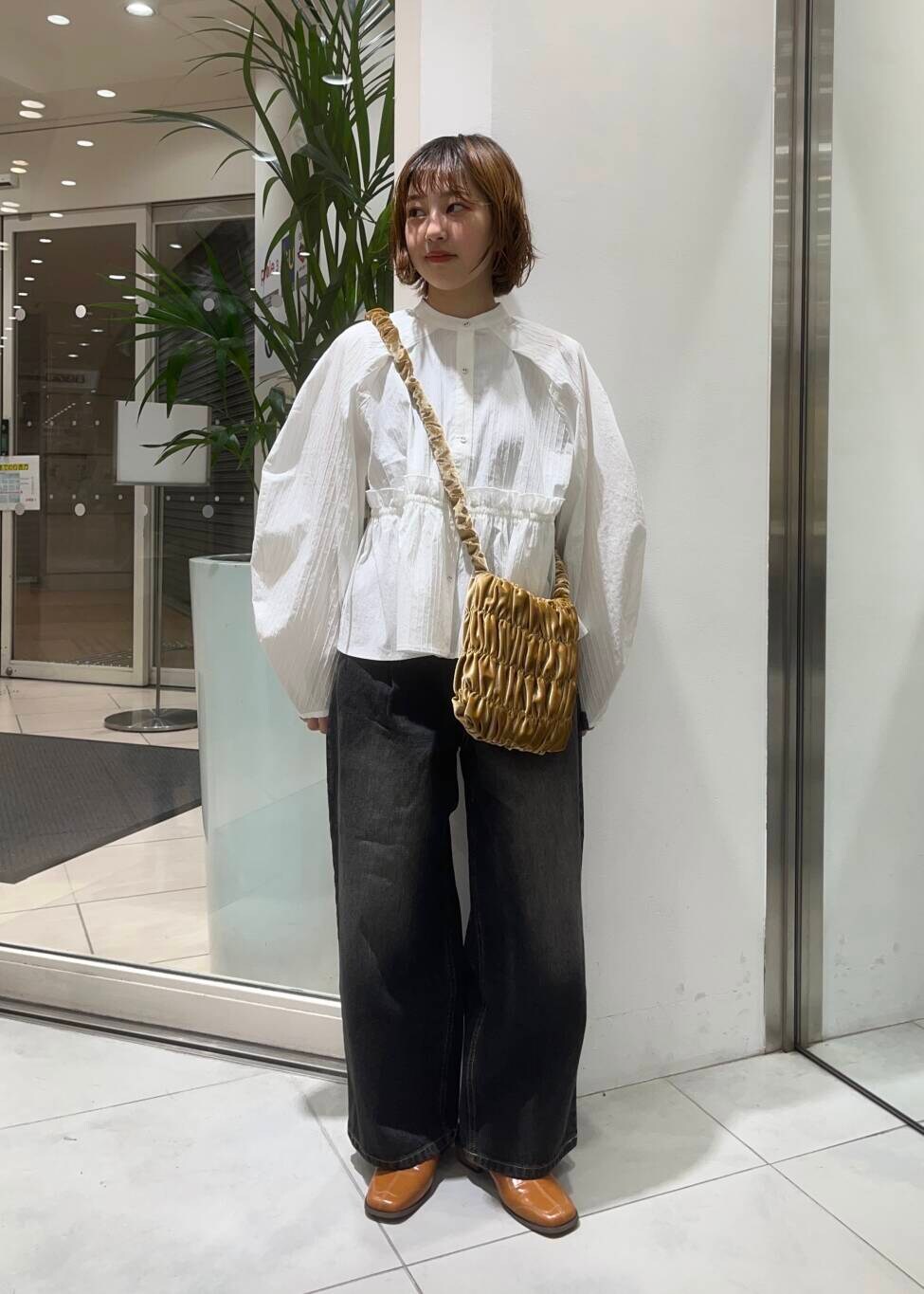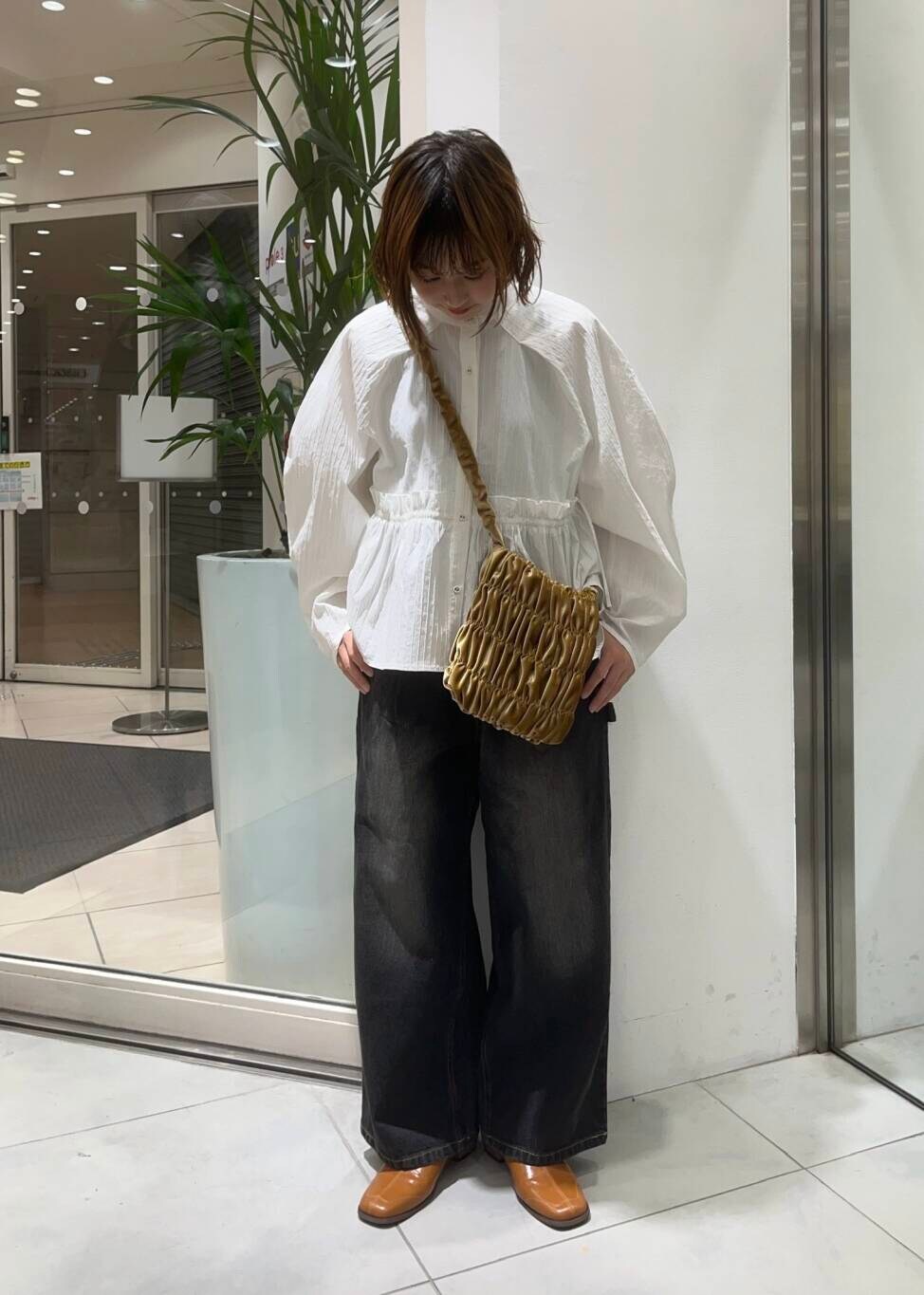 ウエストが絞れるようになっているブラウスは腰周りをカバーできるので骨格ウェーブさんには嬉しいデザインです!