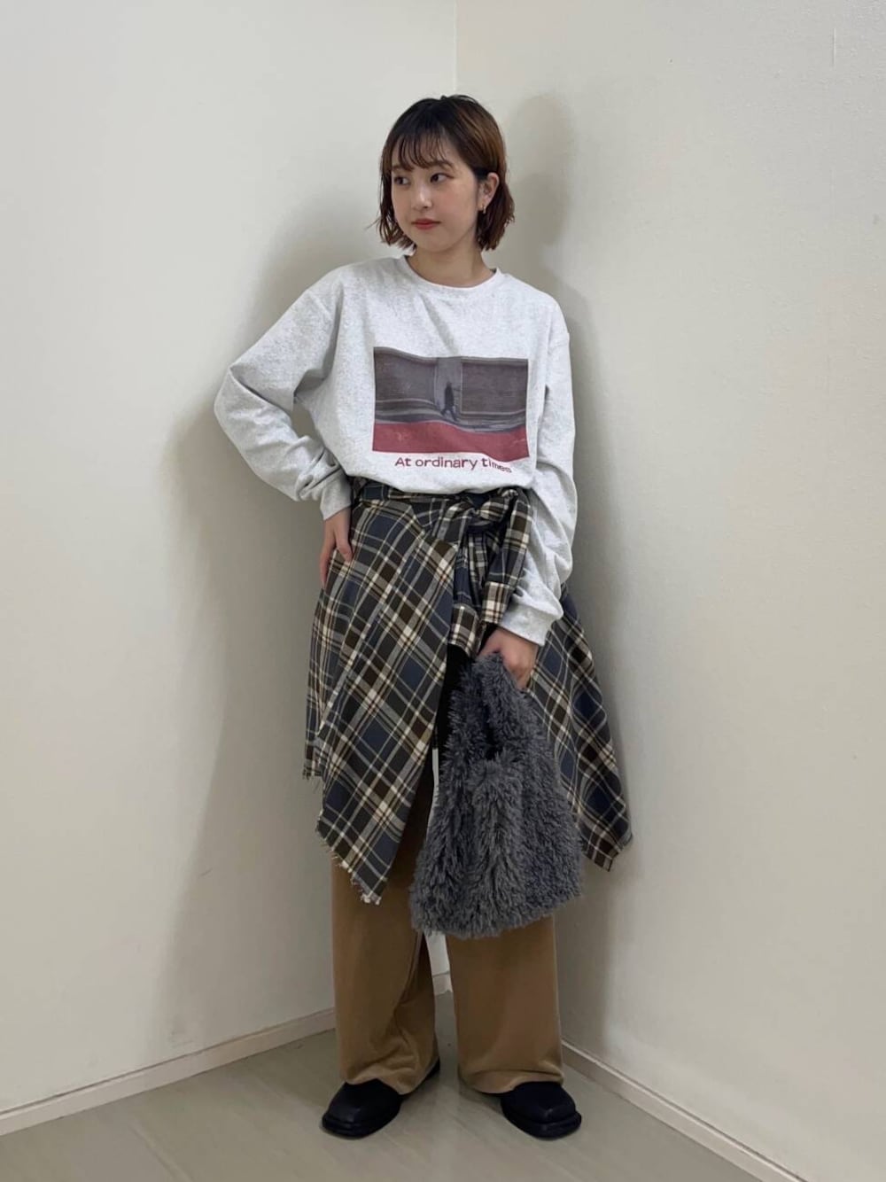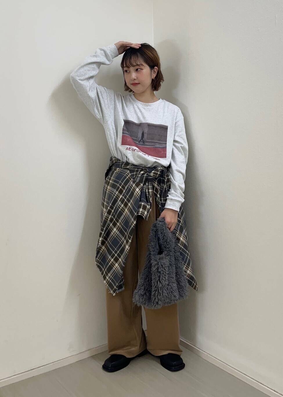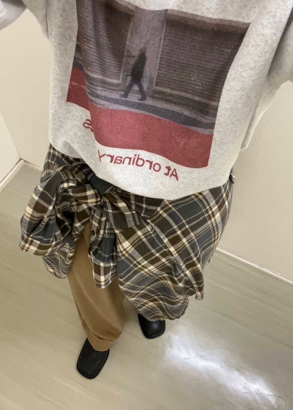今期トレンドのチェック柄のシャツを腰巻にし今っぽく着てみました!