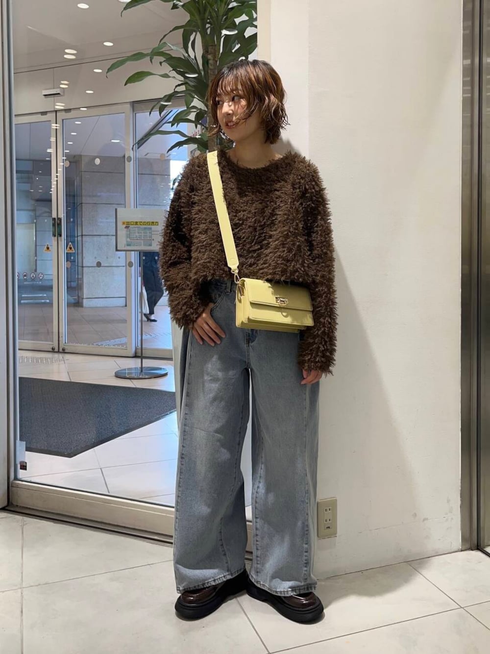 もこもこは甘めな印象になるのでカジュアルにデニムで合わせてみました!