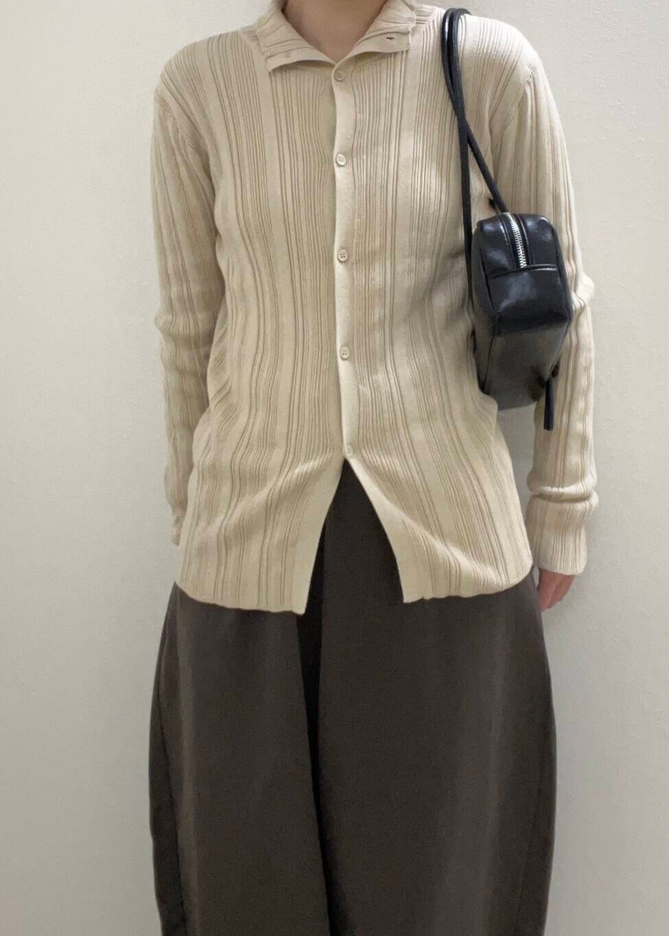 前ボタンを閉めるとハイネックにもできるので