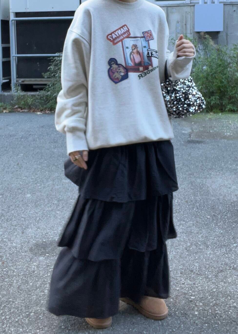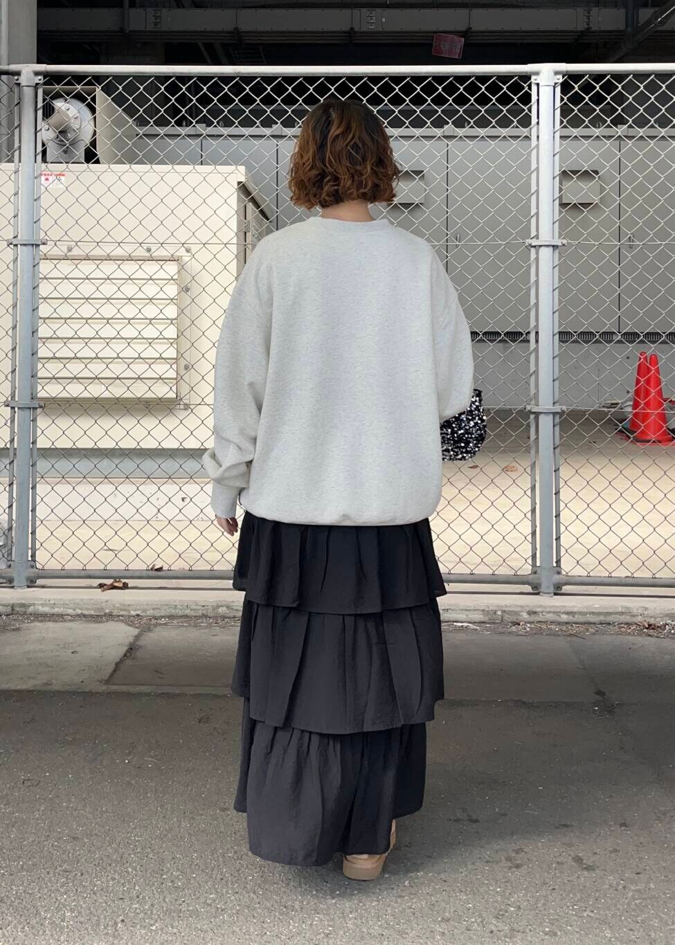ラフに着れるスウェットをティアードスカートと合わせて