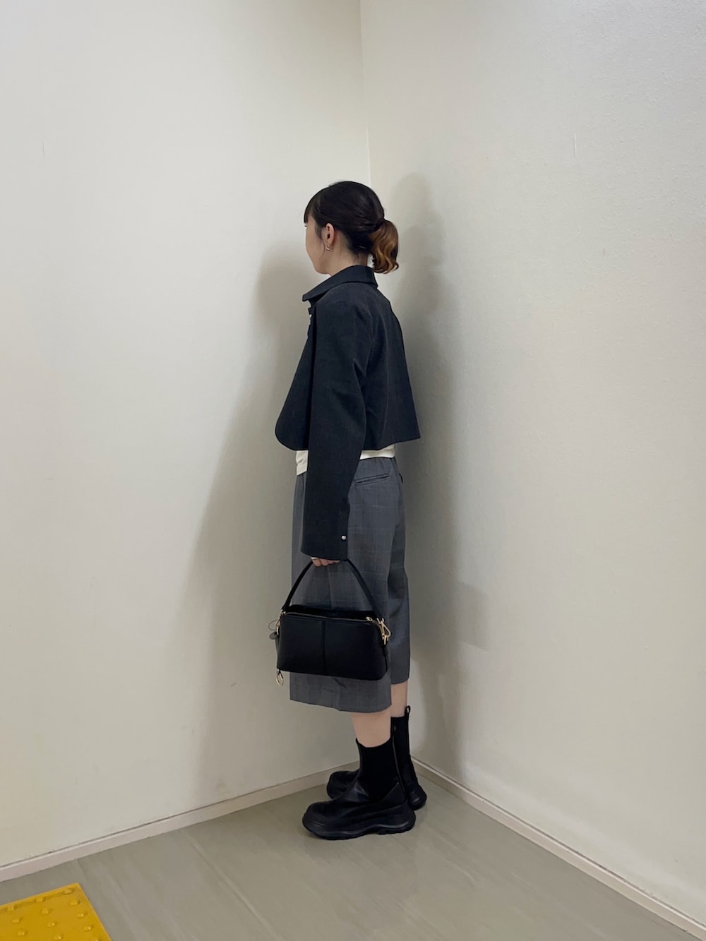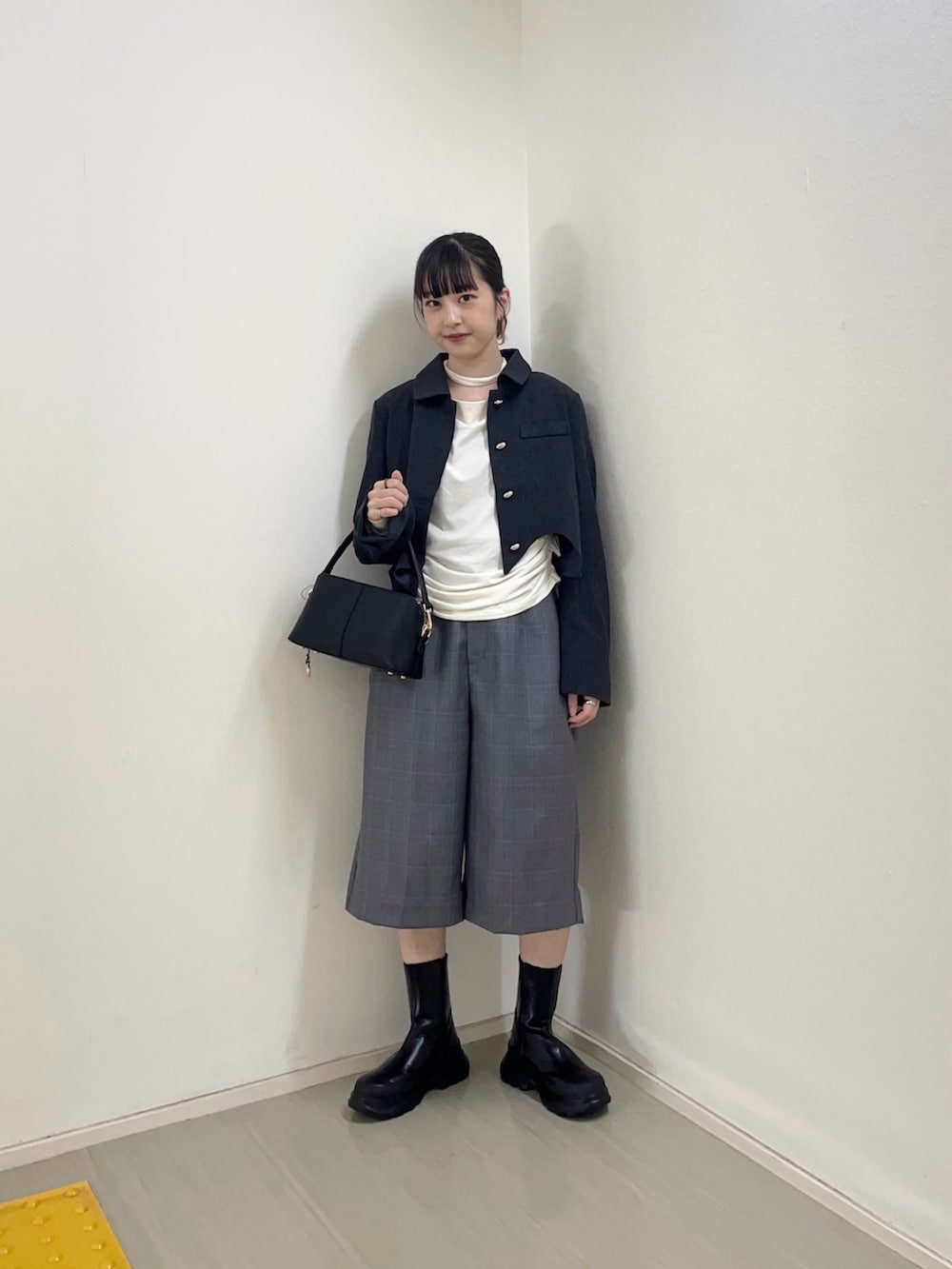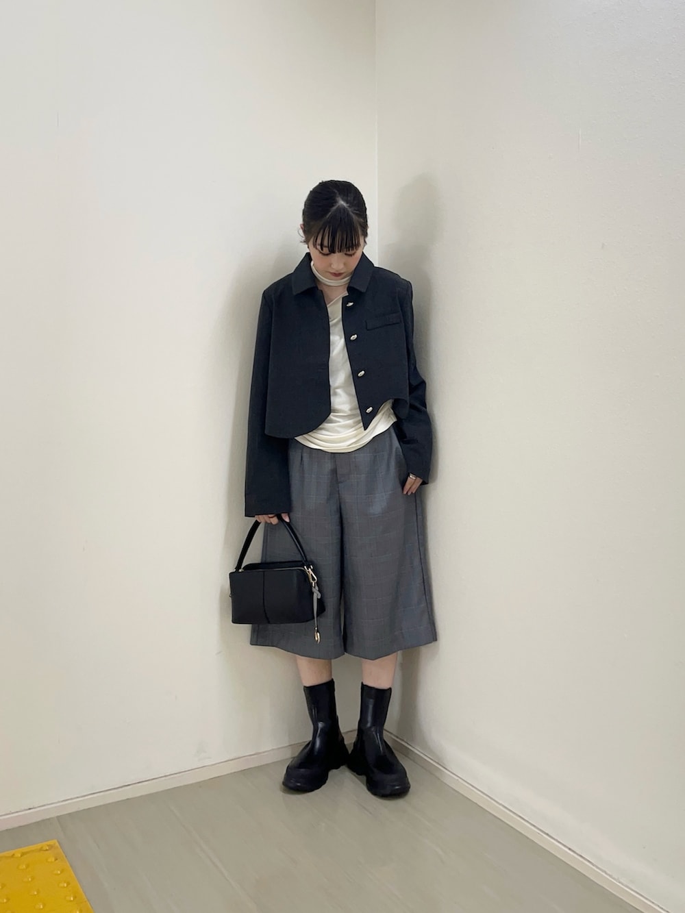 ヘムカットデザインがかわいいジャケットなので裾からインナーをチラ見せすることで