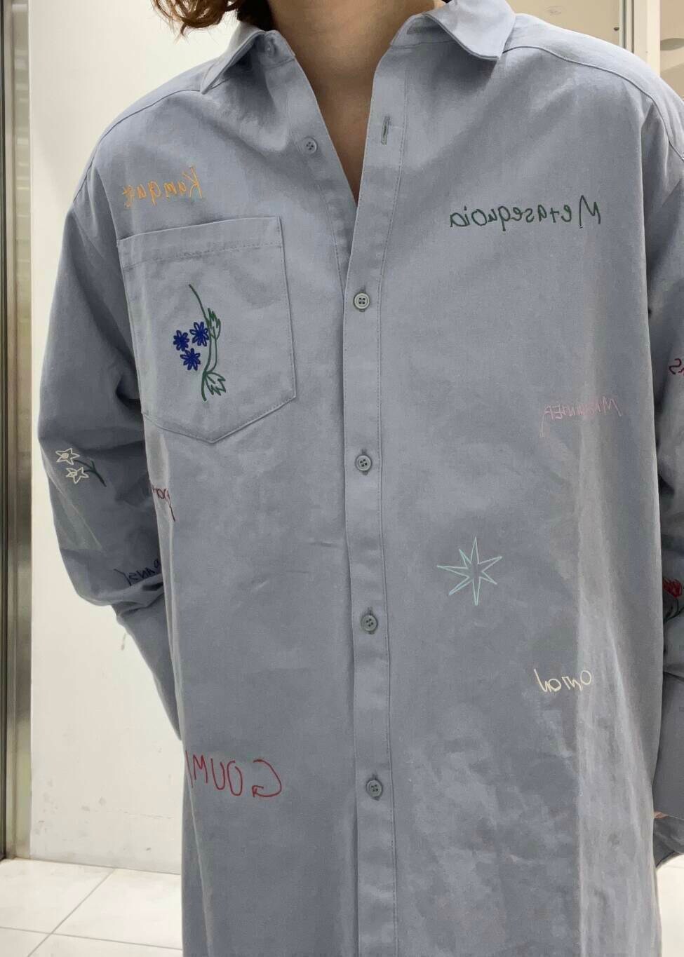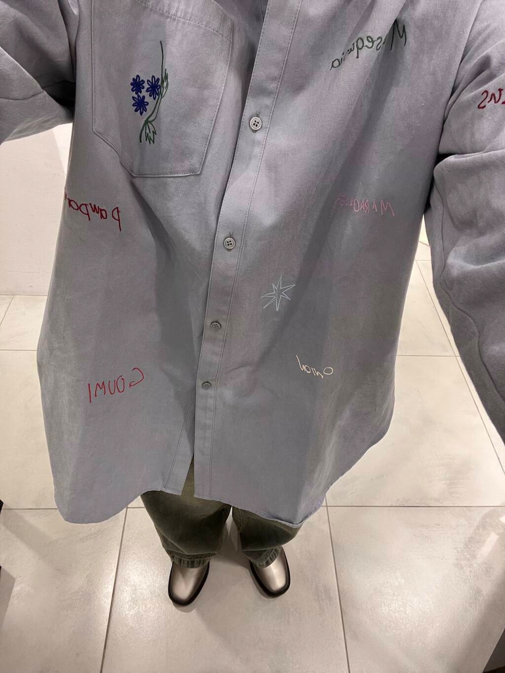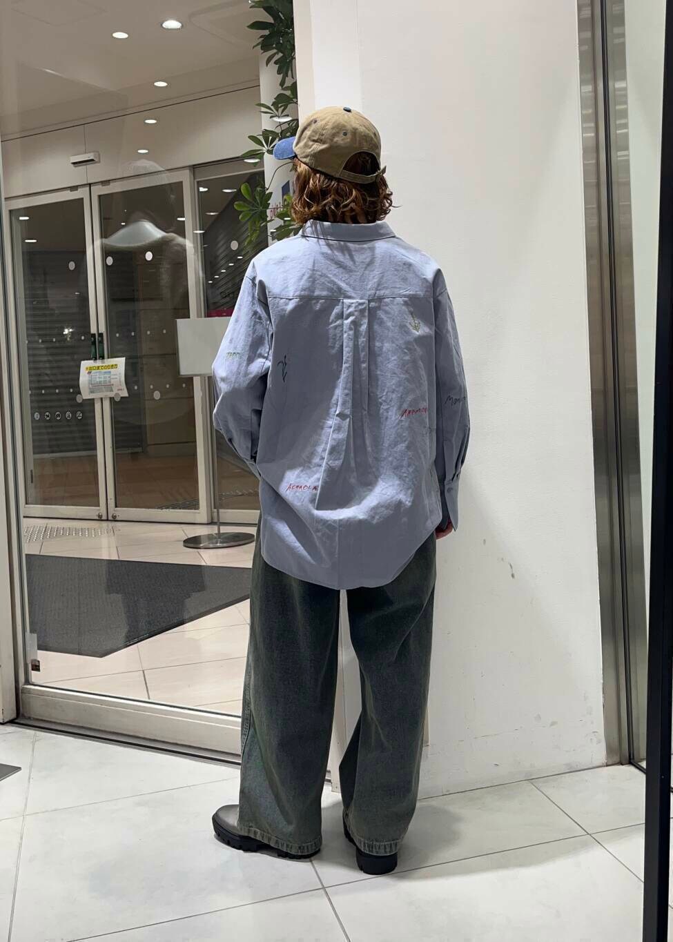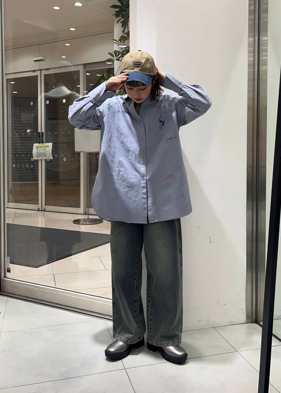 足元はブーツで合わせ、シャツの上のボタンを開け