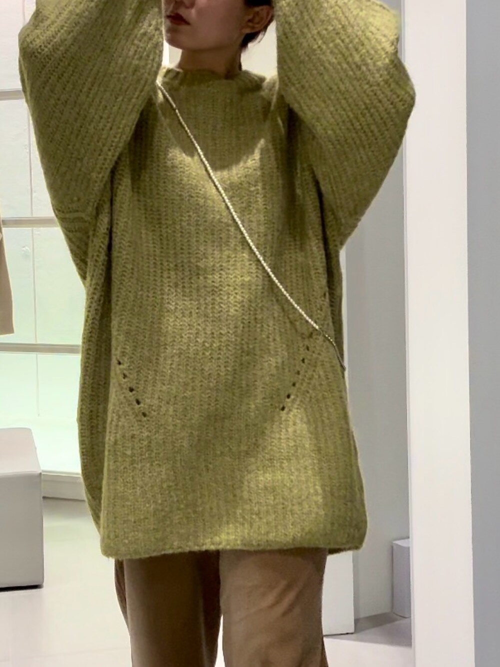 ミニワンピースのニットは163cmの私でもお尻がすっぽり隠れる丈感です!