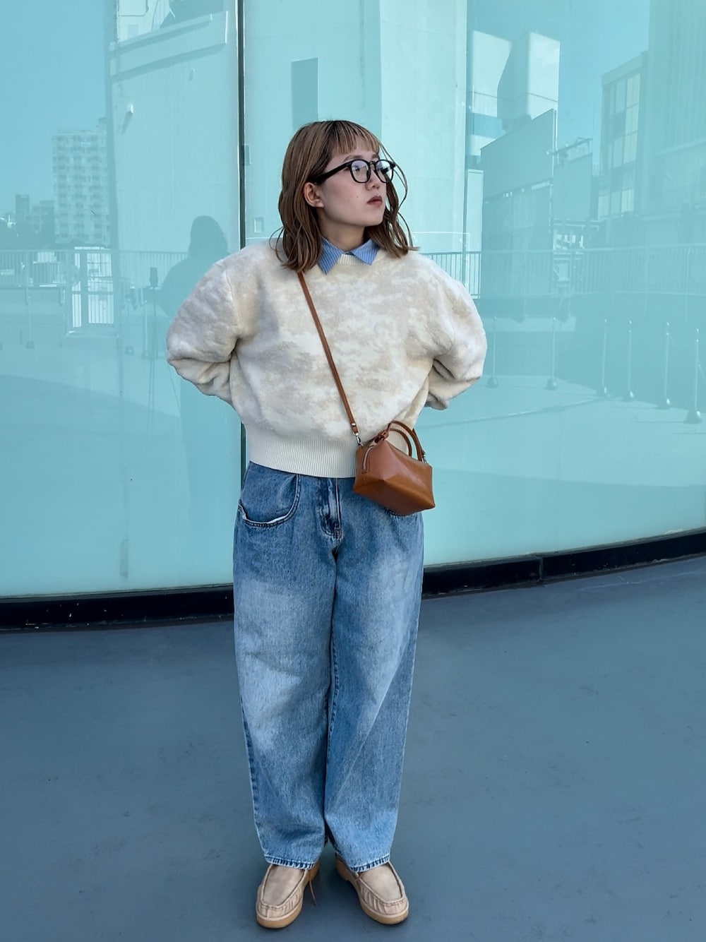 今回はデニムとインナーのシャツの色を合わせたのがポイント💡