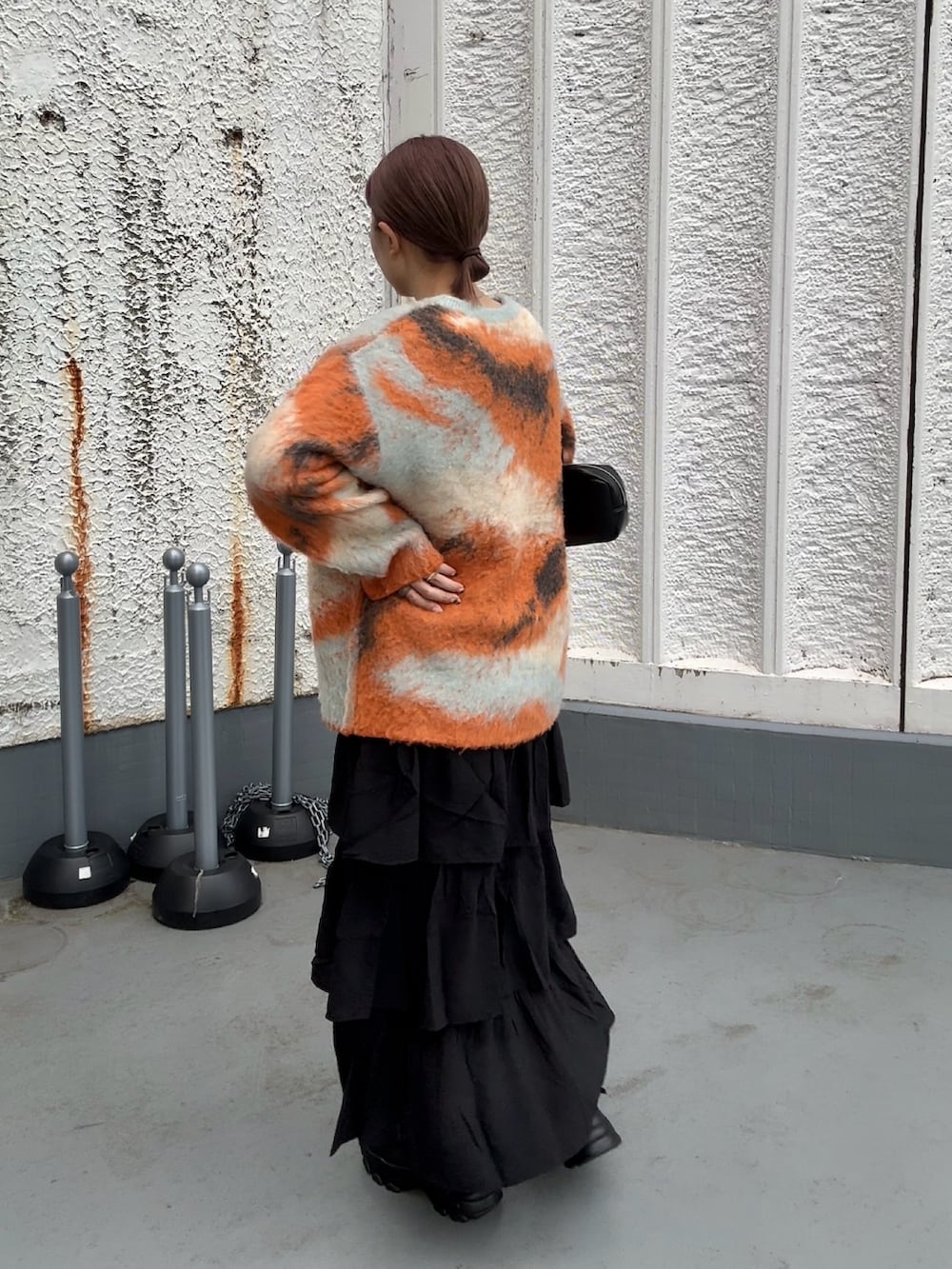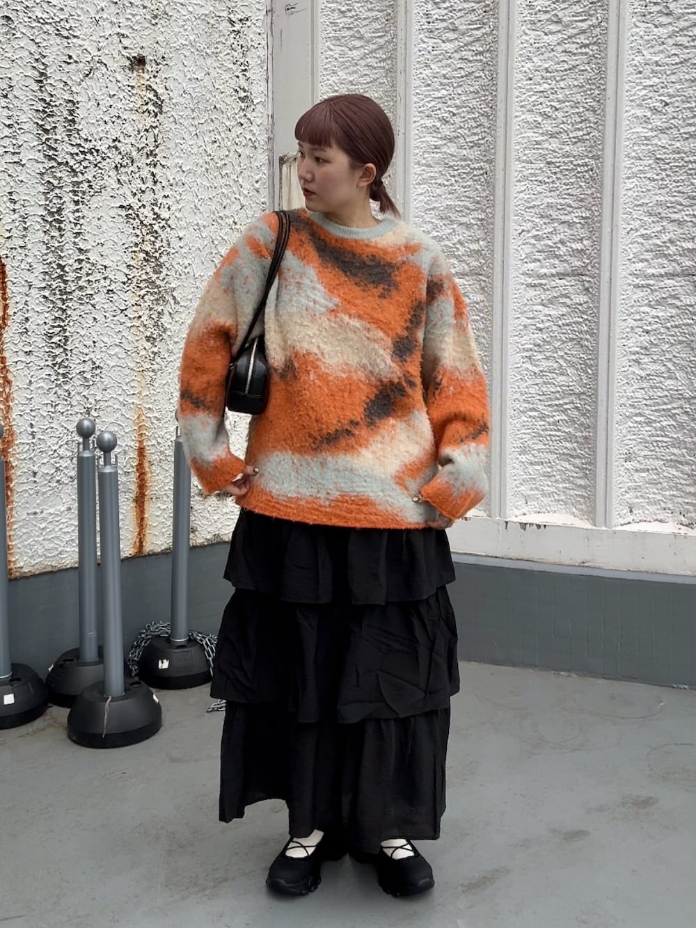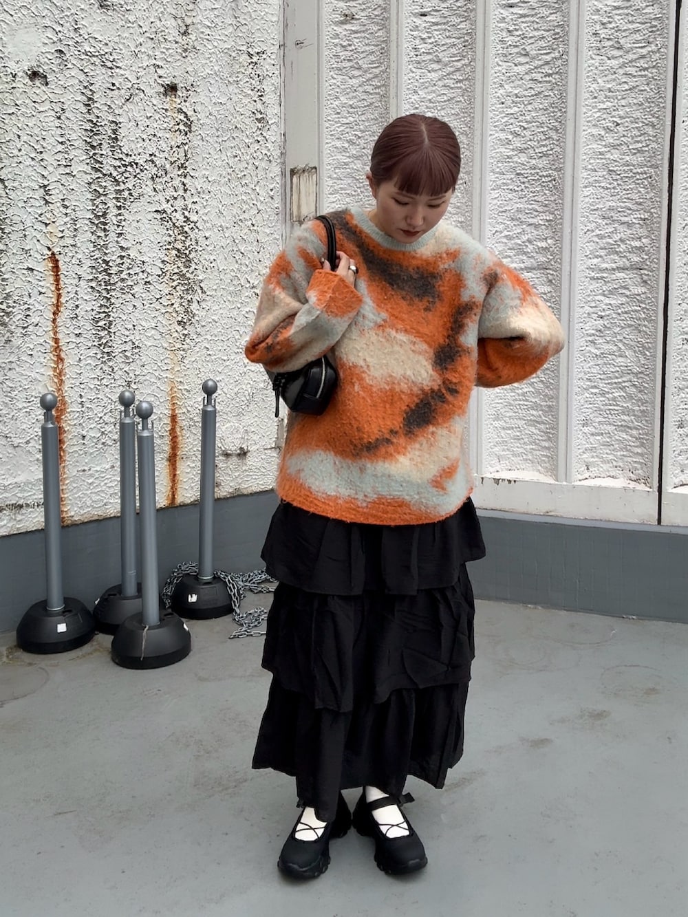 カジュアルに見えるゆるっとニットにティアードスカートを合わせてガーリーさをプラス🎀