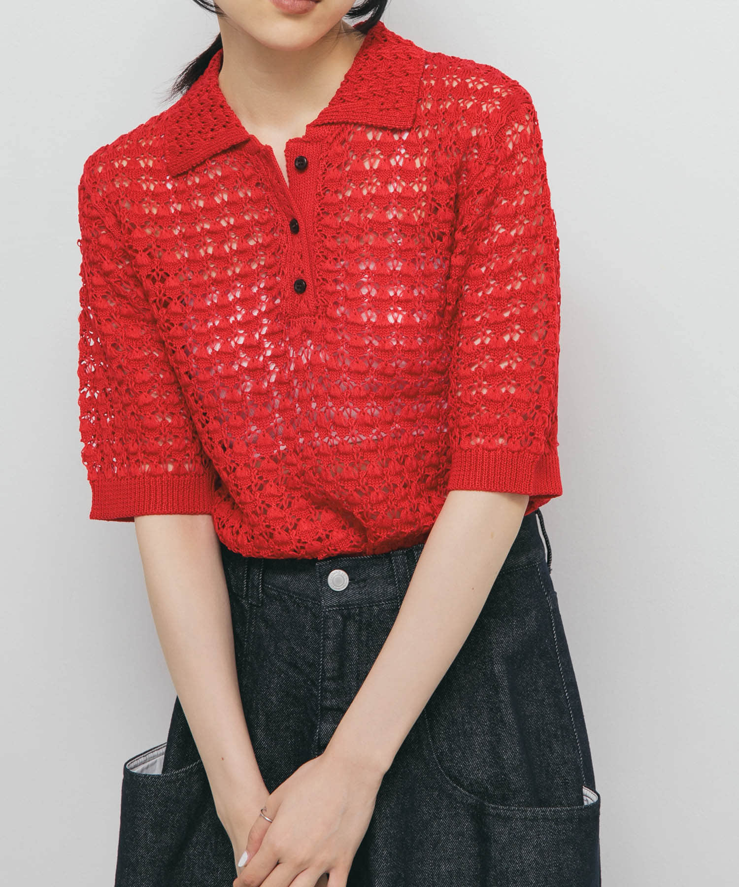 半袖ポロニット×デニムで楽かわいい!!!