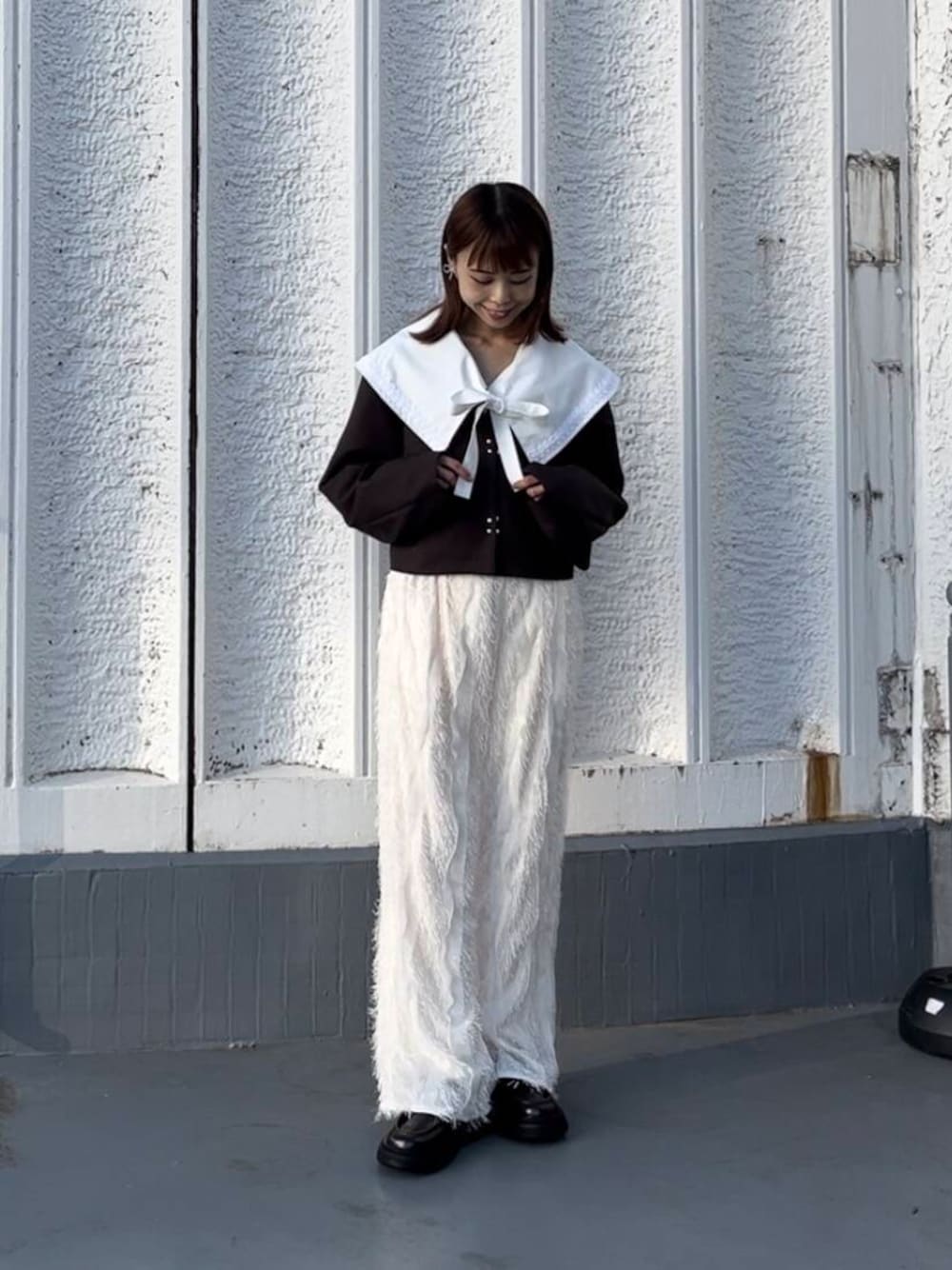 ファーのパンツは肌触りが良くて着心地も抜群ですよ🤍🤍
