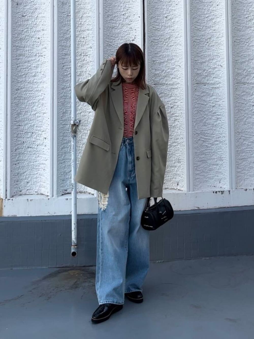 綺麗めジャケットにダメージデニムを合わせて外してみました😉