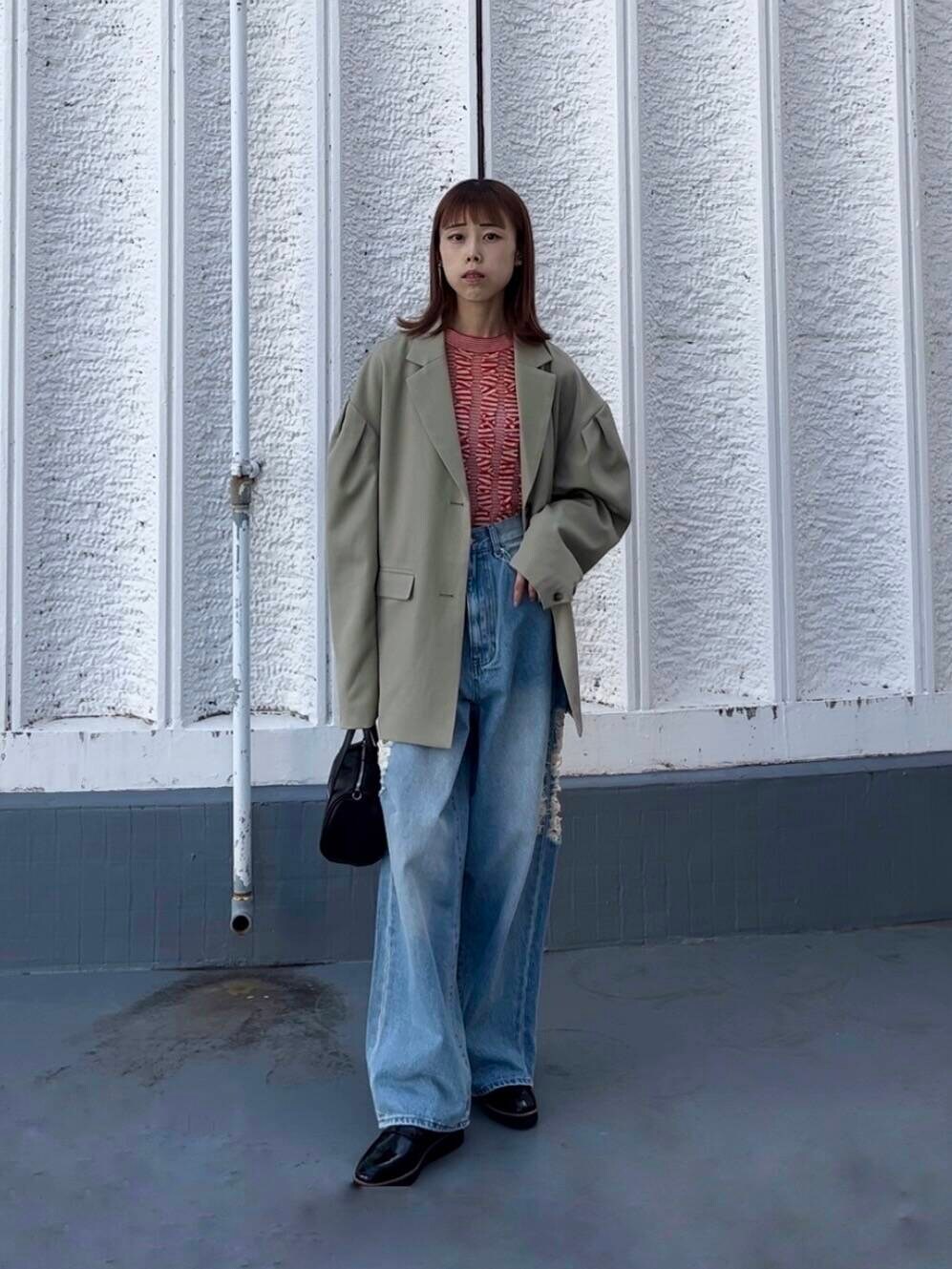 インナーの赤ニットがコーデのアクセントです🌹💋