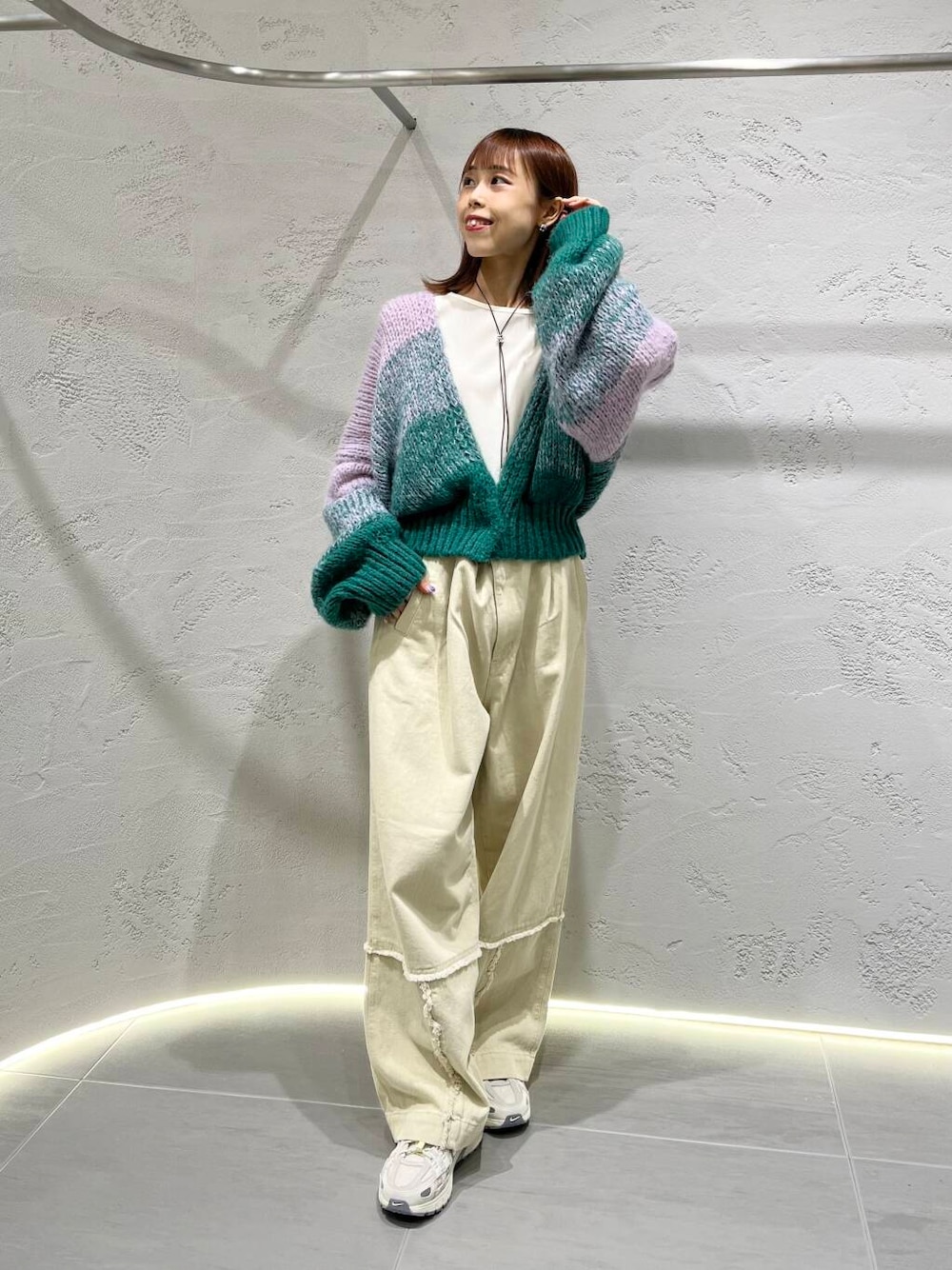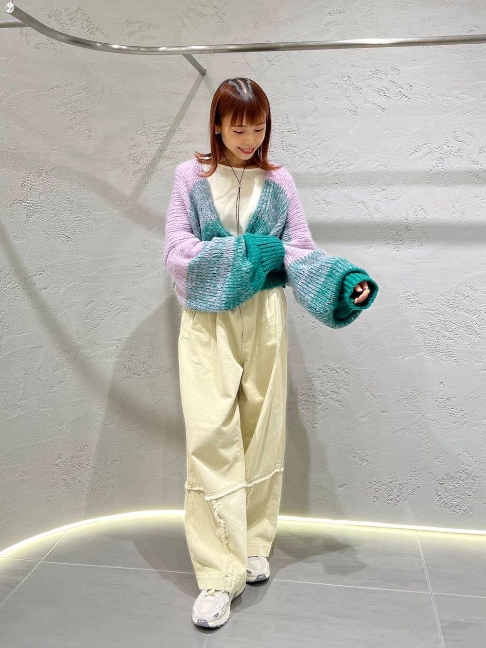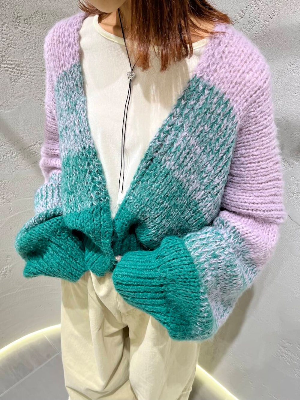 WEBと一部店舗限定のカーディガンは、袖のたっぽり感とシルエットがとにかく可愛いです🥹💚💜