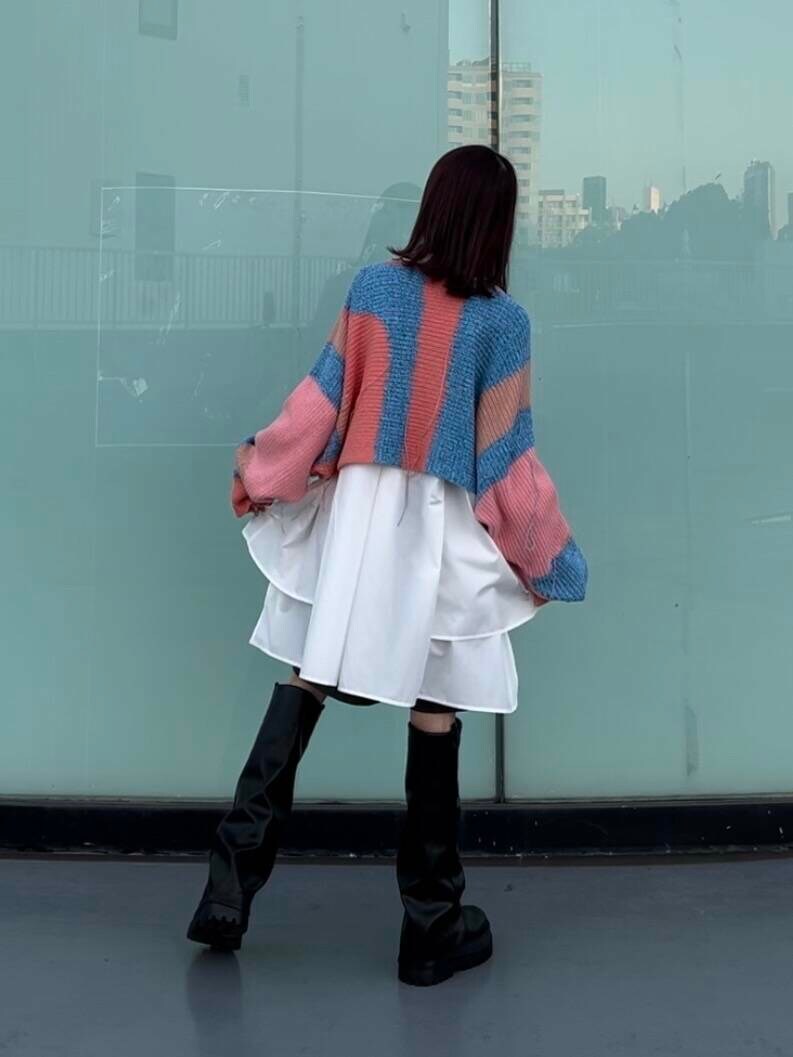 一枚で目を惹くショート丈のニットはミニワンピースやシャツとのレイヤードがオススメです🦩🩵