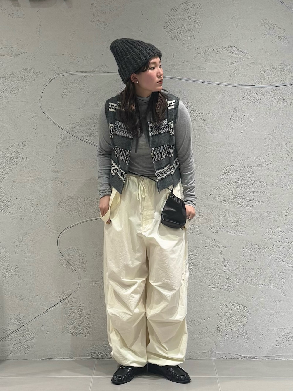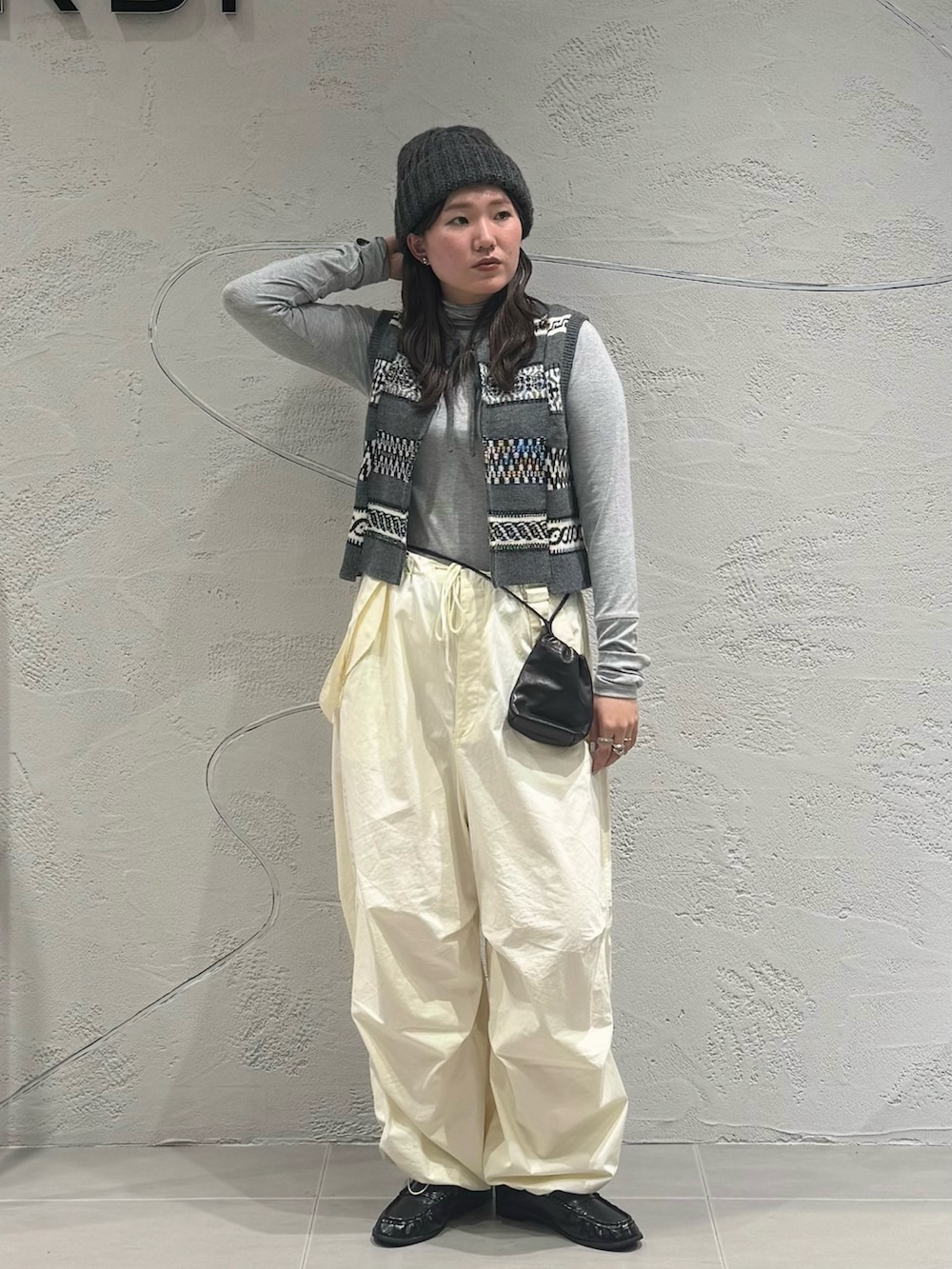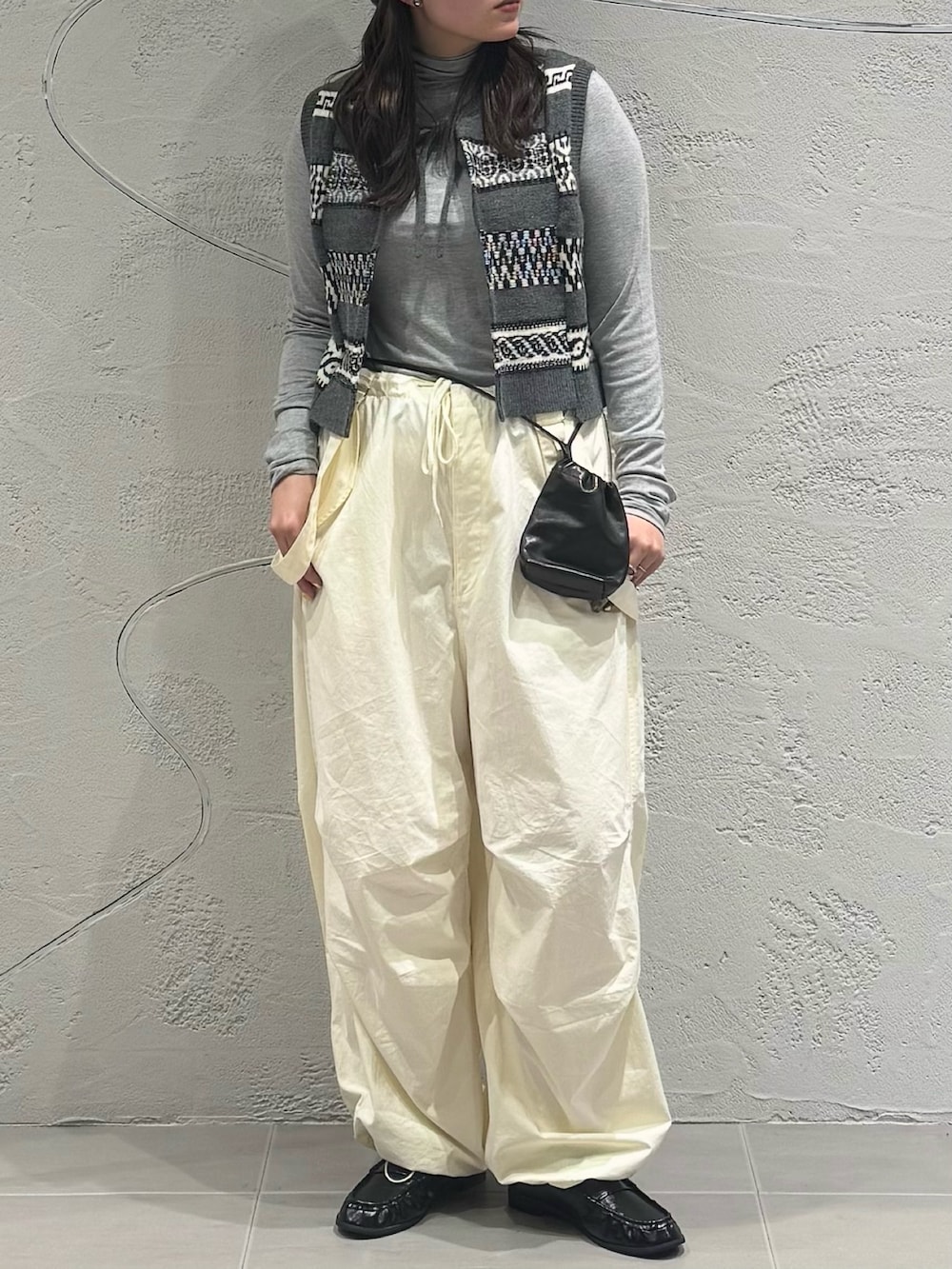 コンパクトなサイズ感はワイドパンツやデニムと相性抜群なのでボトムスは2wayで使えるルーズなカーゴパンツに🌱