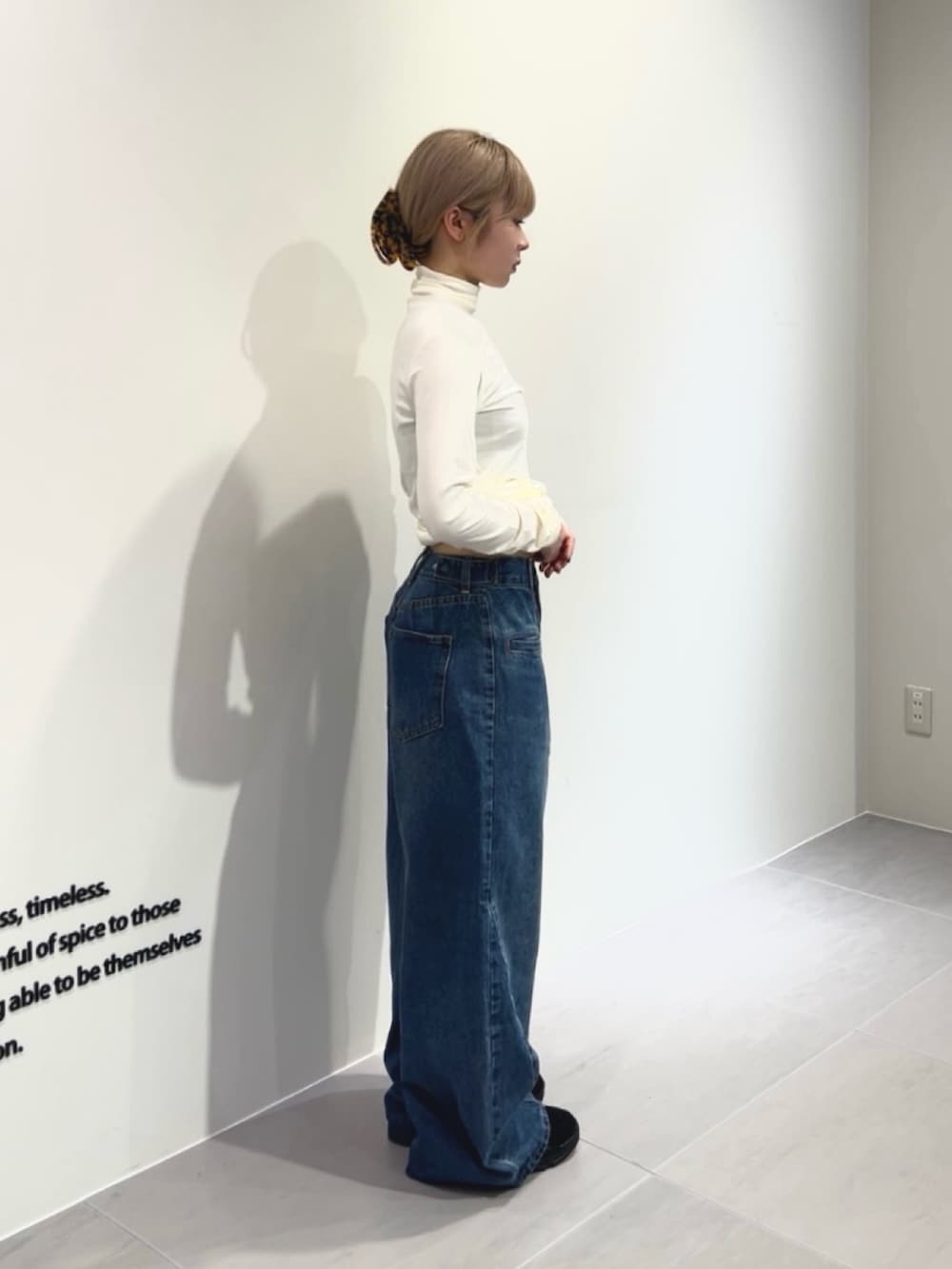 ポケット位置が高いデニムはシンプルな合わせでもスタイルアップしてくれます◎