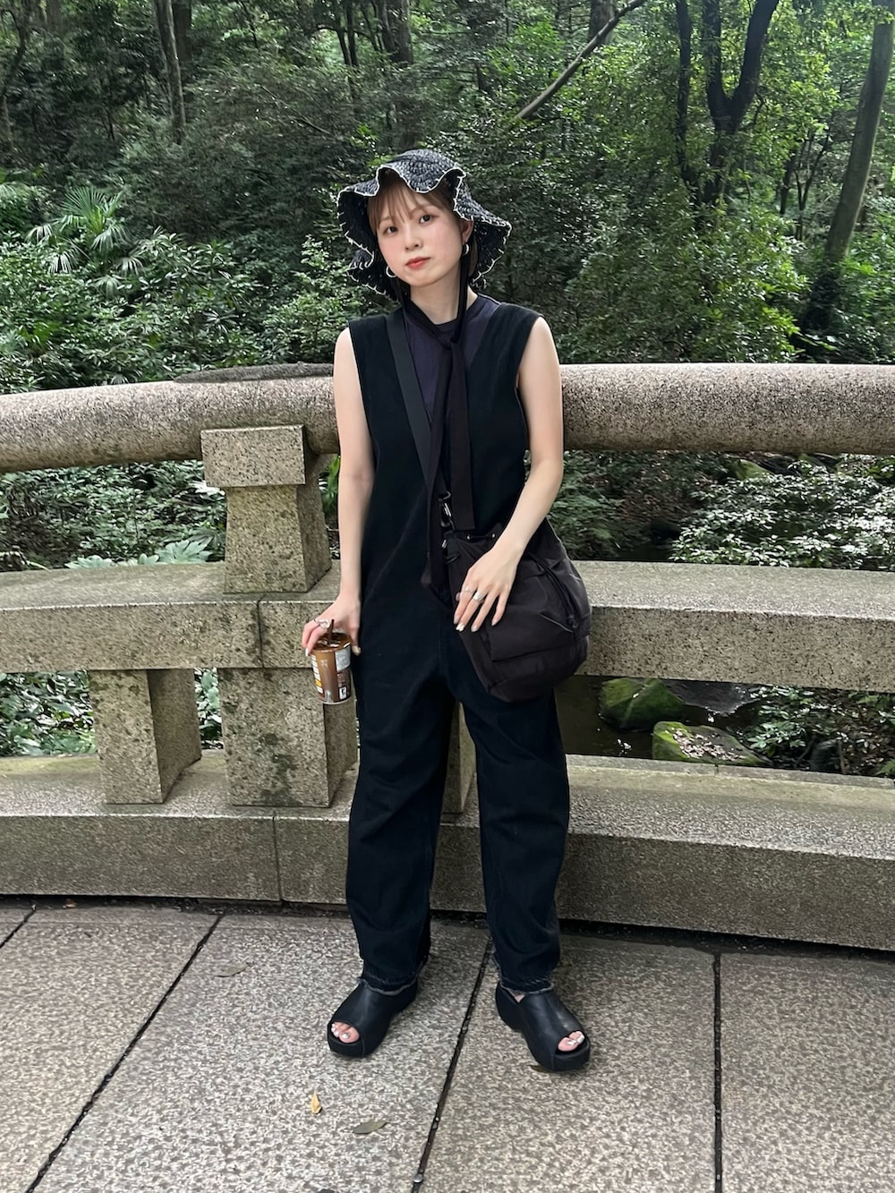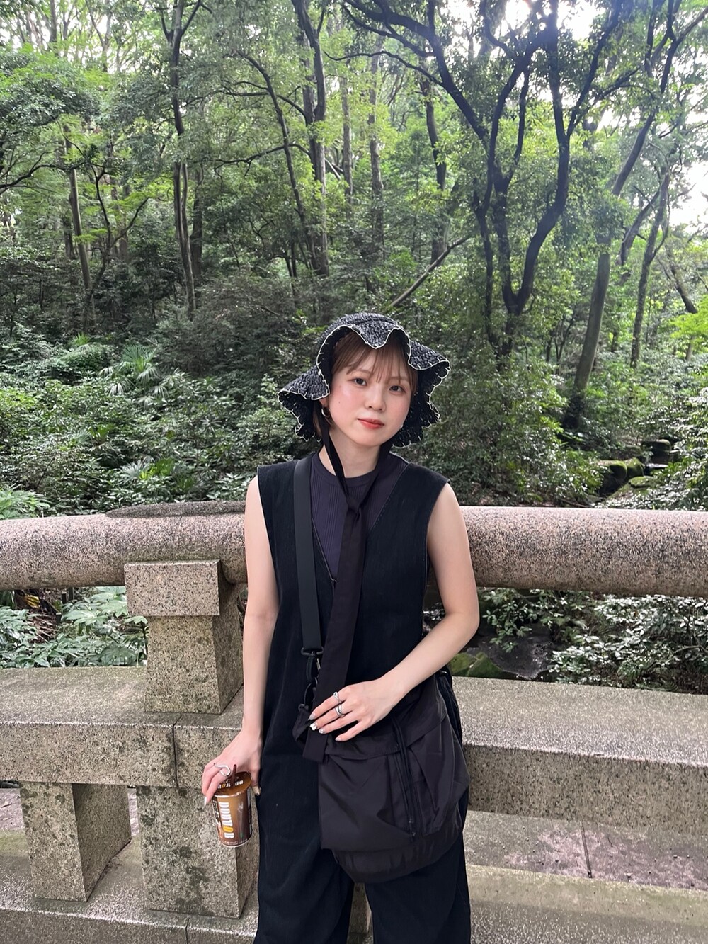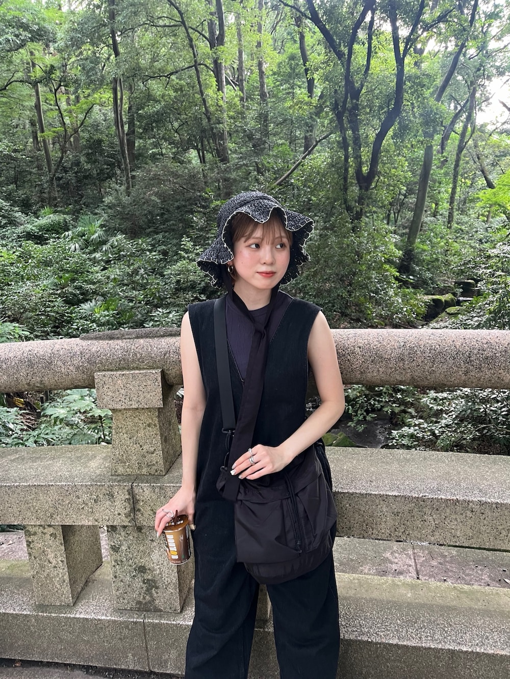 ブラックワントーンだから甘めな麦わらをワンポイントに少し可愛らしさも🐈⬛🖤