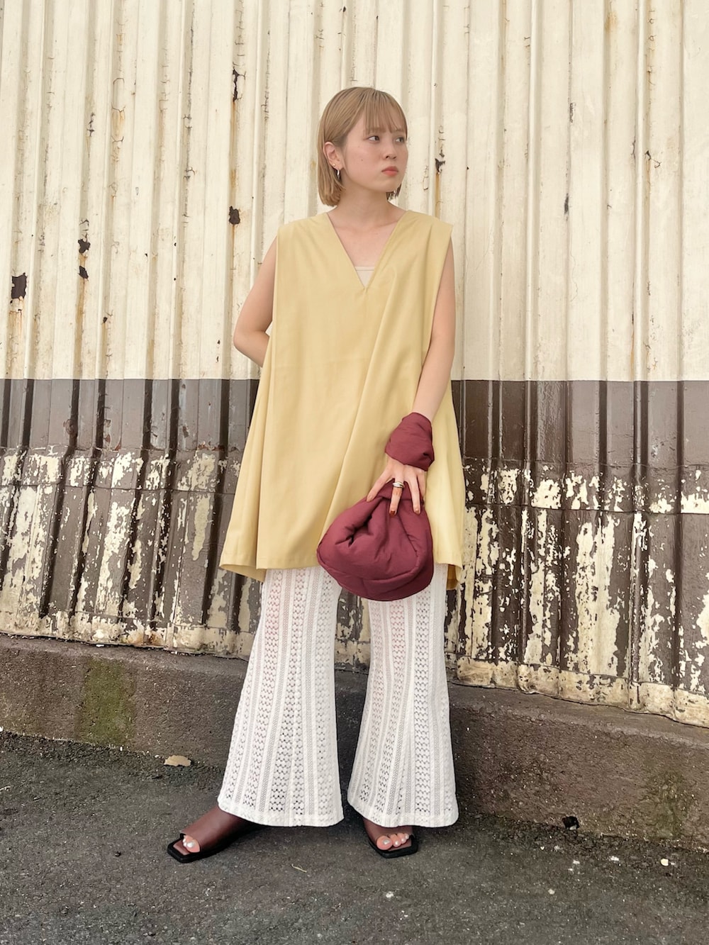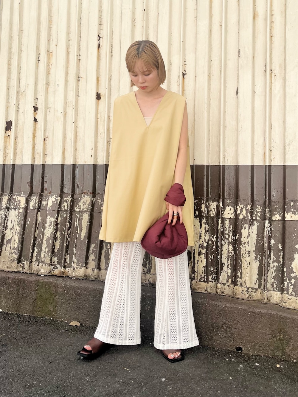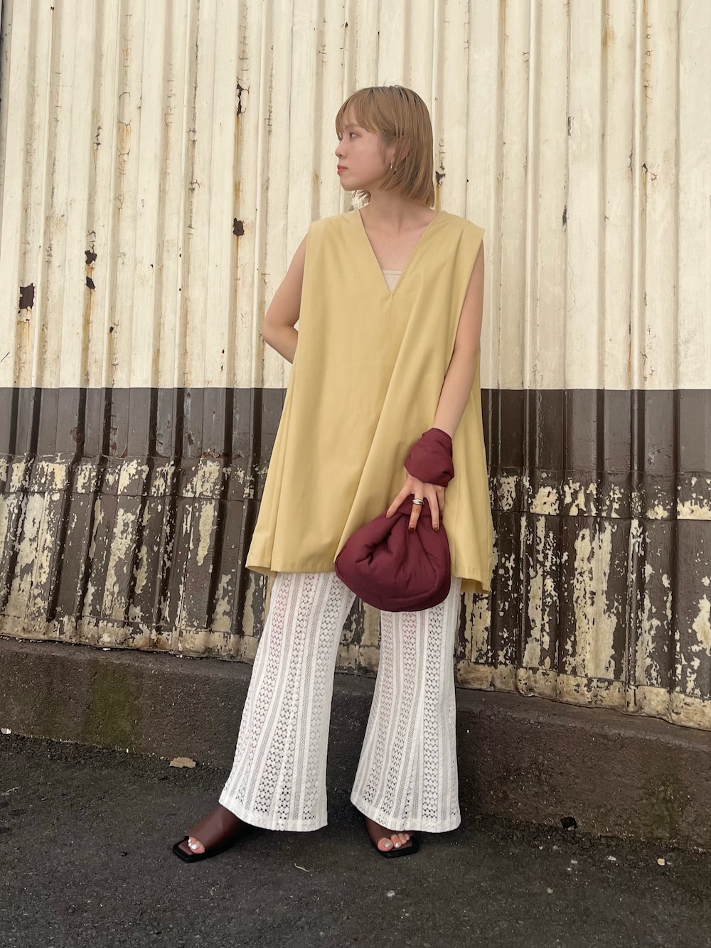 かなりゆったりとしたサイズ感ですが、肩にタックが入っていたり、首元が少し深めにVネックになっているのですっきりとした印象で着ていただけます!!