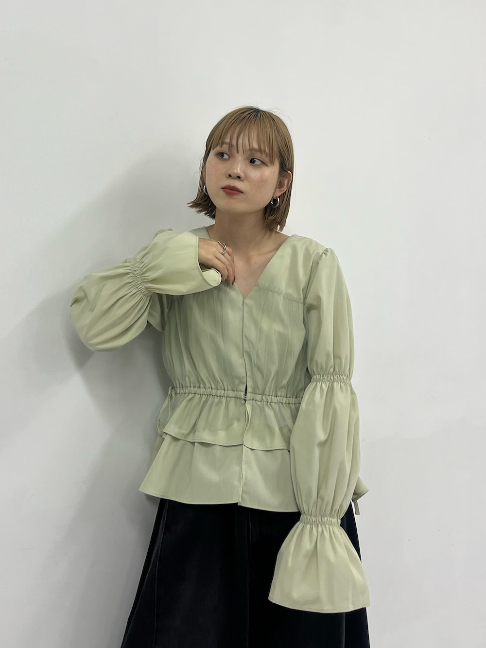 ブラウスは前後2WAYで雰囲気を変えて着ていただけますよ^^
