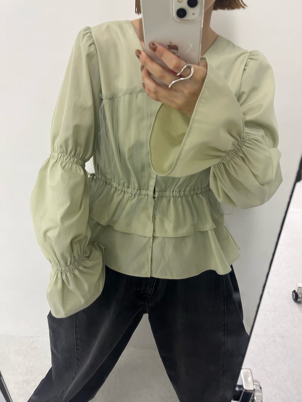 お袖とウエストがキュッと絞ったデザインなのでスタイルアップします!