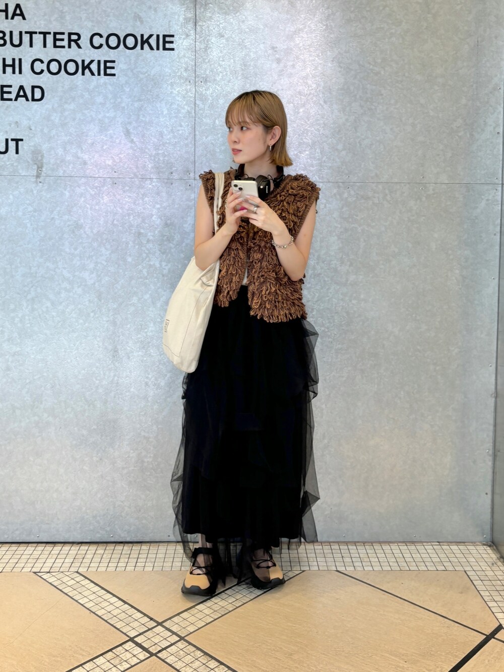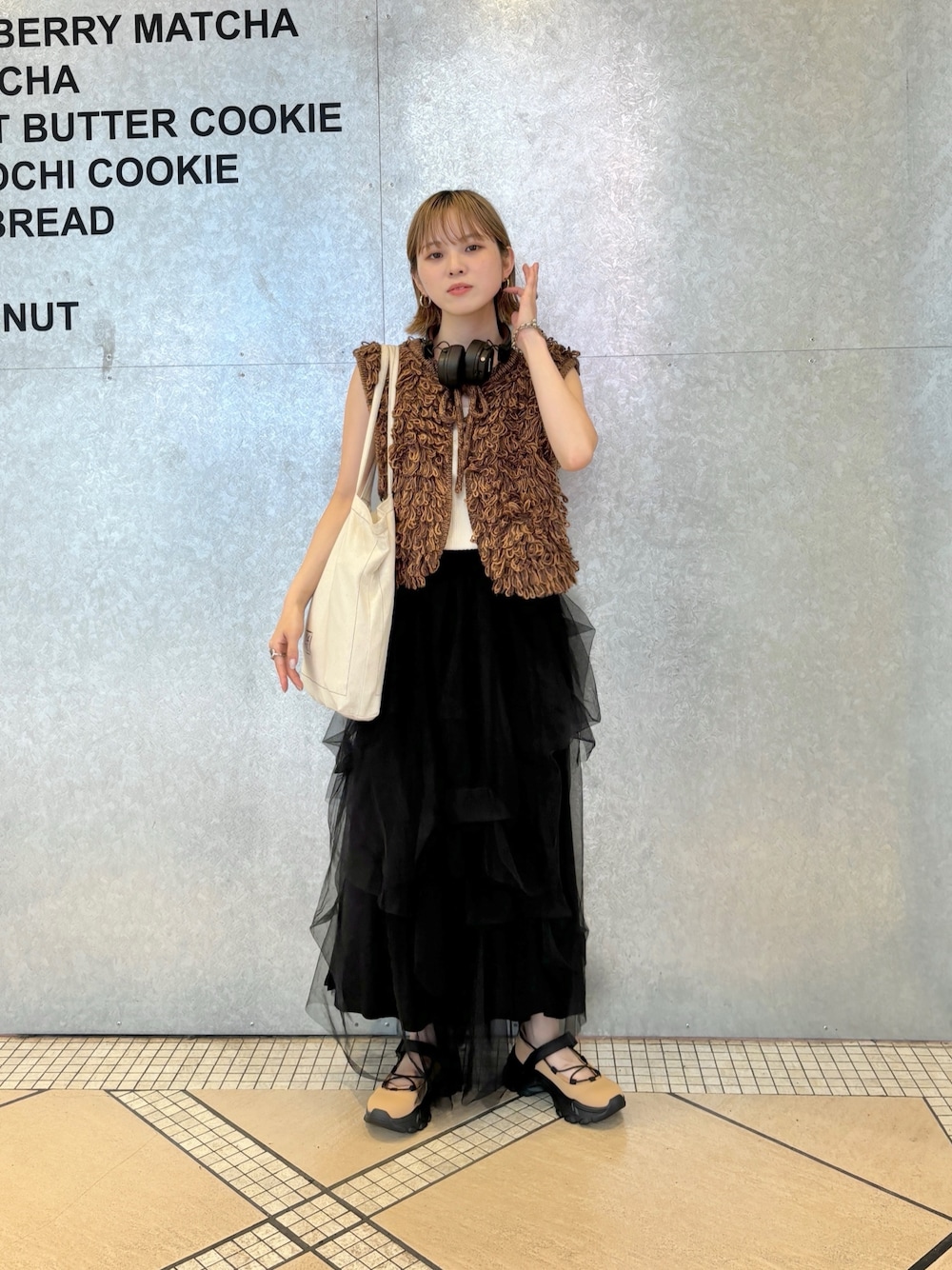 今回は短丈のニットベストを合わせました◎