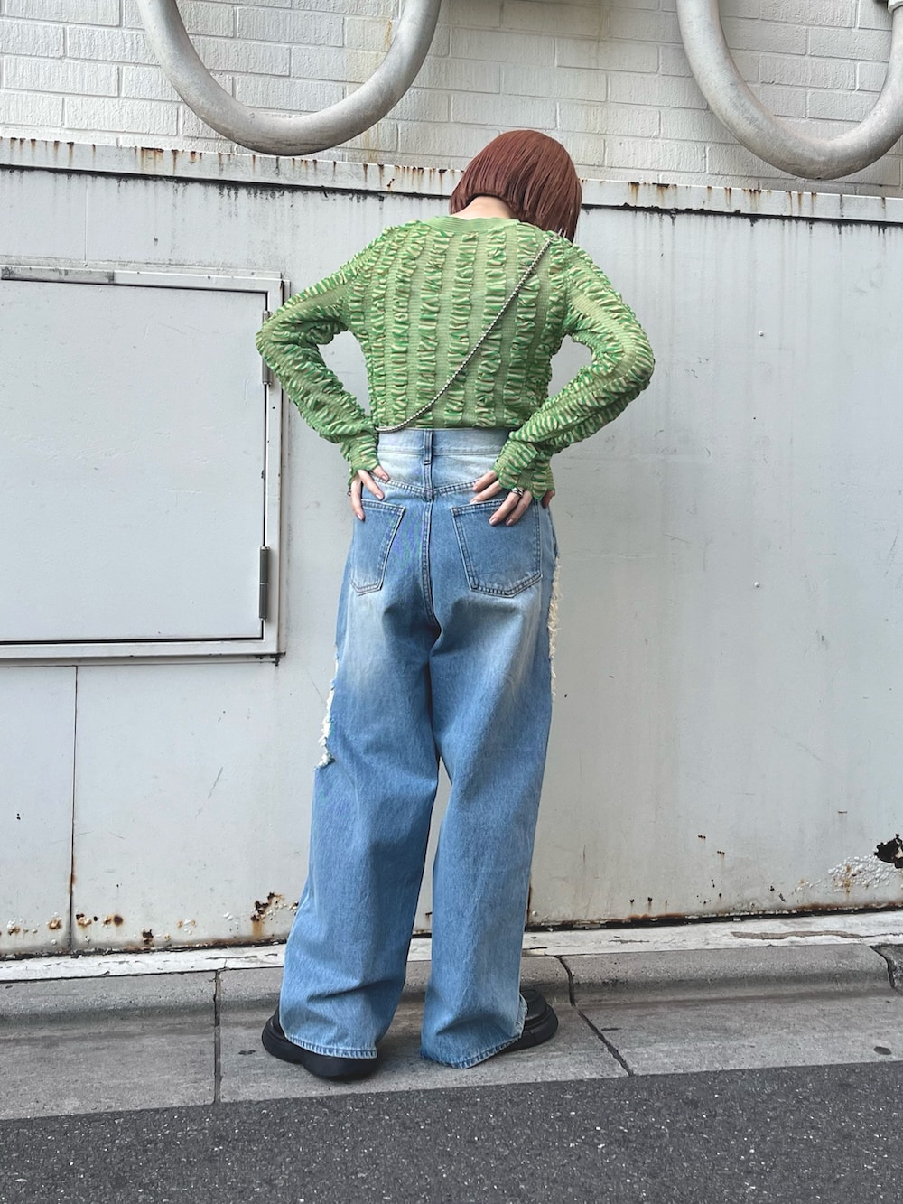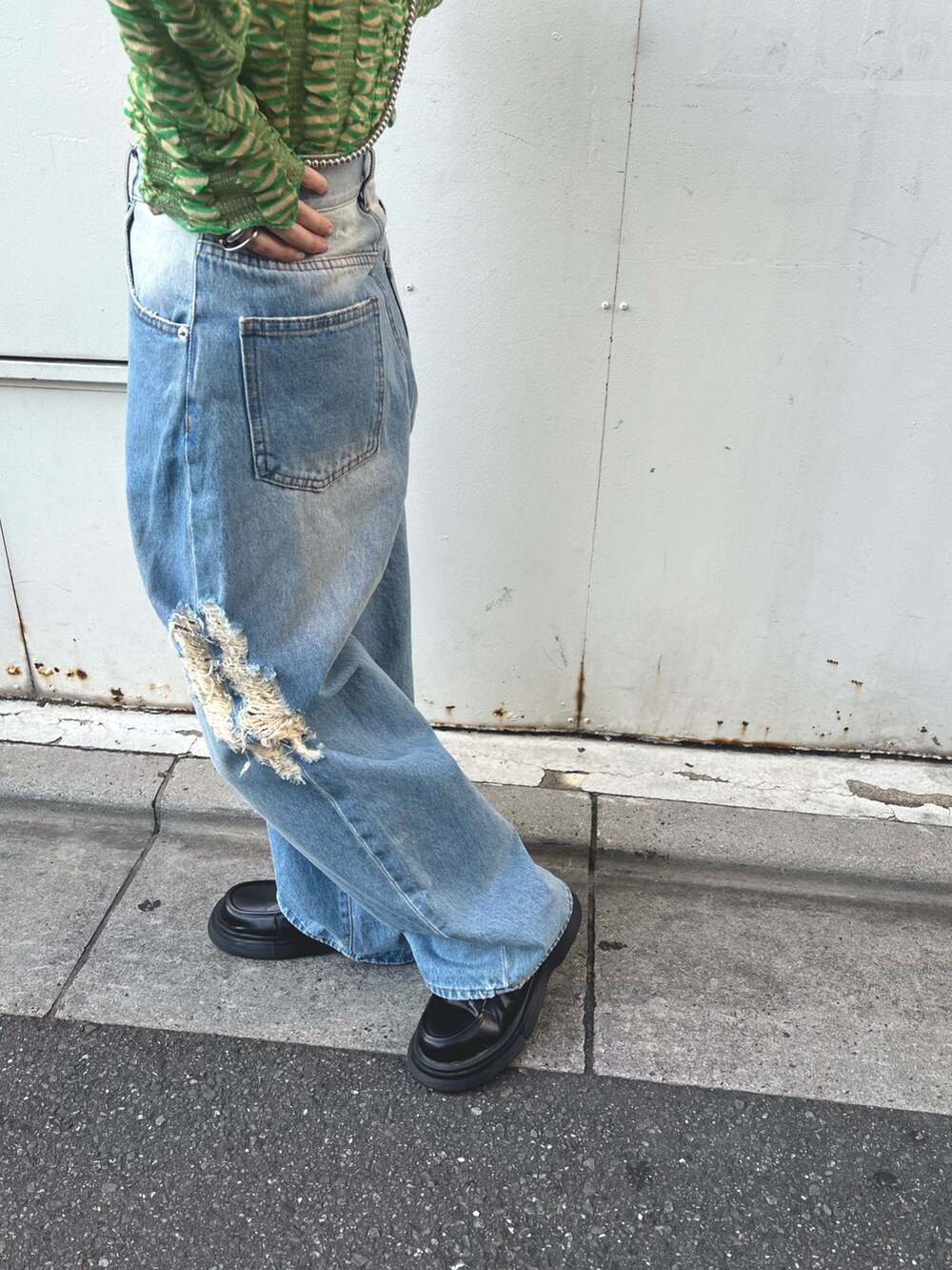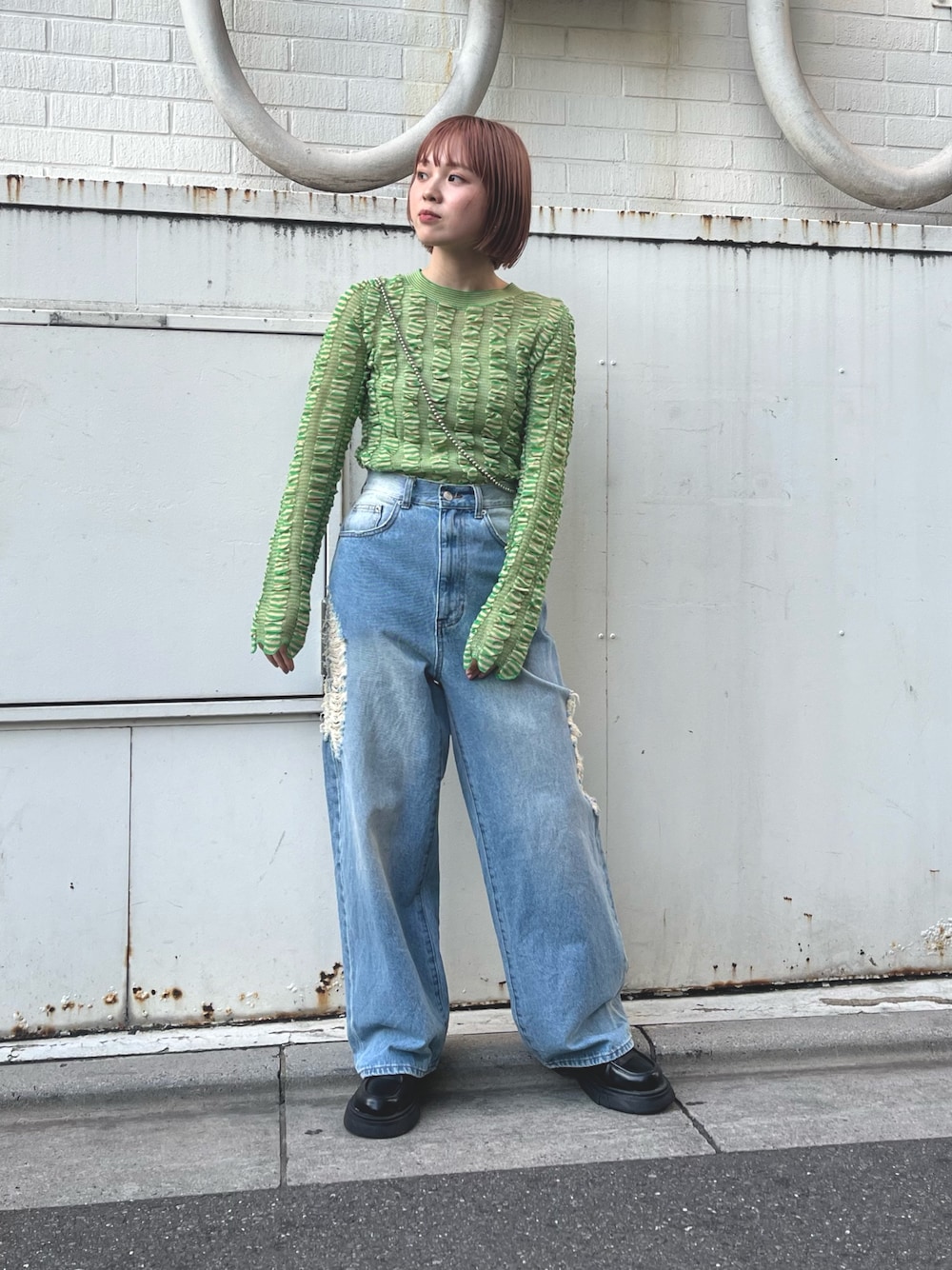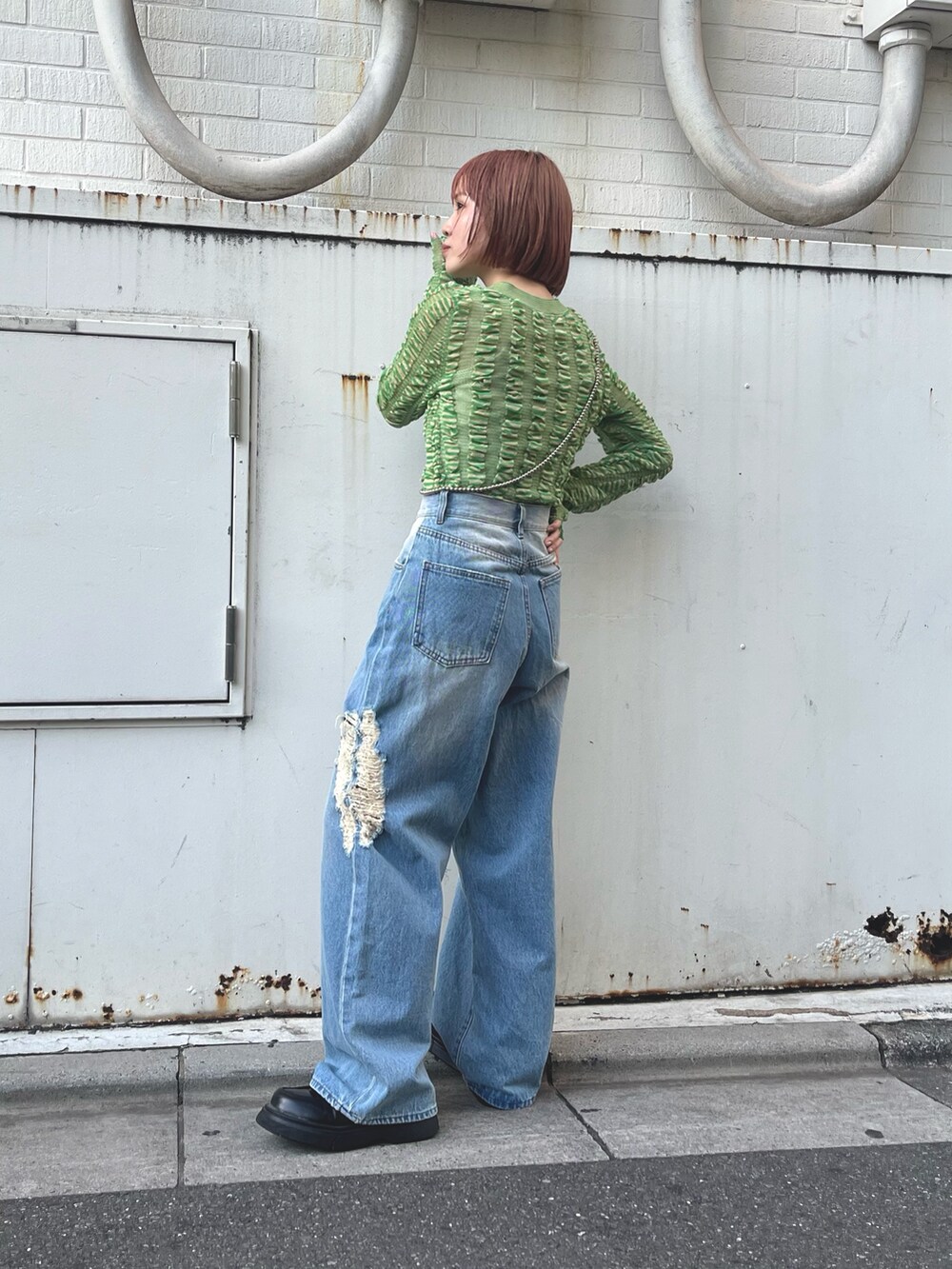 デニムもほどよいダメージが可愛いです!153cmで34サイズを着用してます!