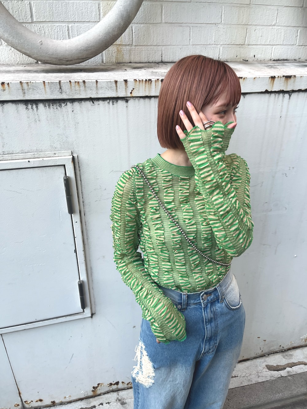 ポコポコした立体感と少しラメ感のある生地で着るだけでおしゃれ感を出してくれます👆🏻✨