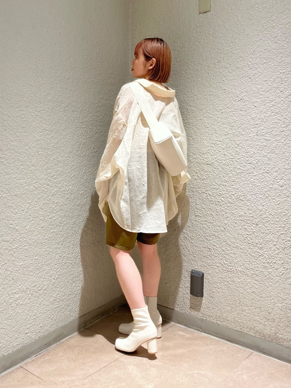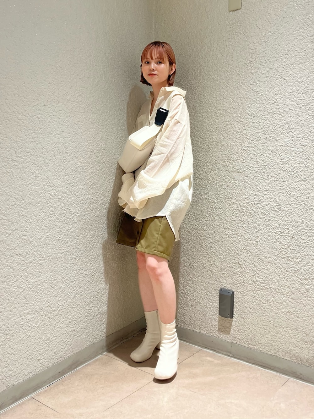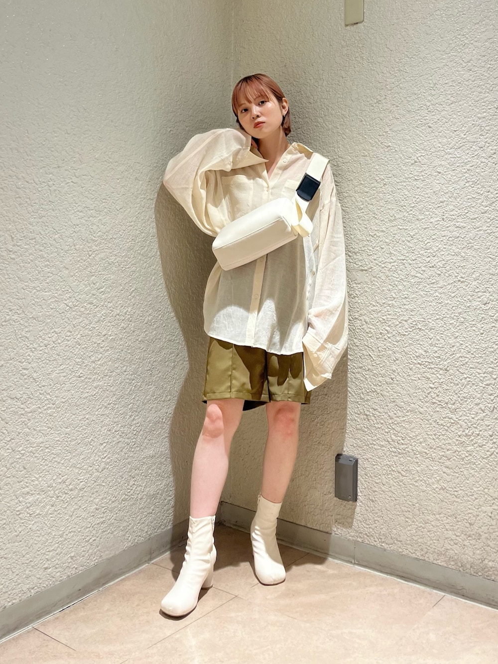 今回はハーフパンツ合わせで少年感が出ないようにシャツはボタンを2個開けて襟抜き、ブーツもすっきりとしたフォルムのもので合わせました◎