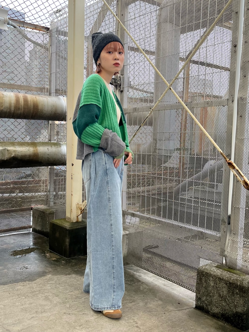 パキッとしたカラーなのでこれからの時期はアウターの中に入れてちらっとグリーンを見せるのも可愛いですよ^^