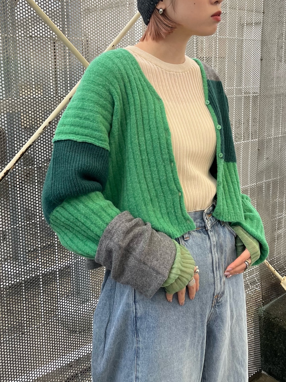 大人気のパッチワークニットカーディガン🫛🟢