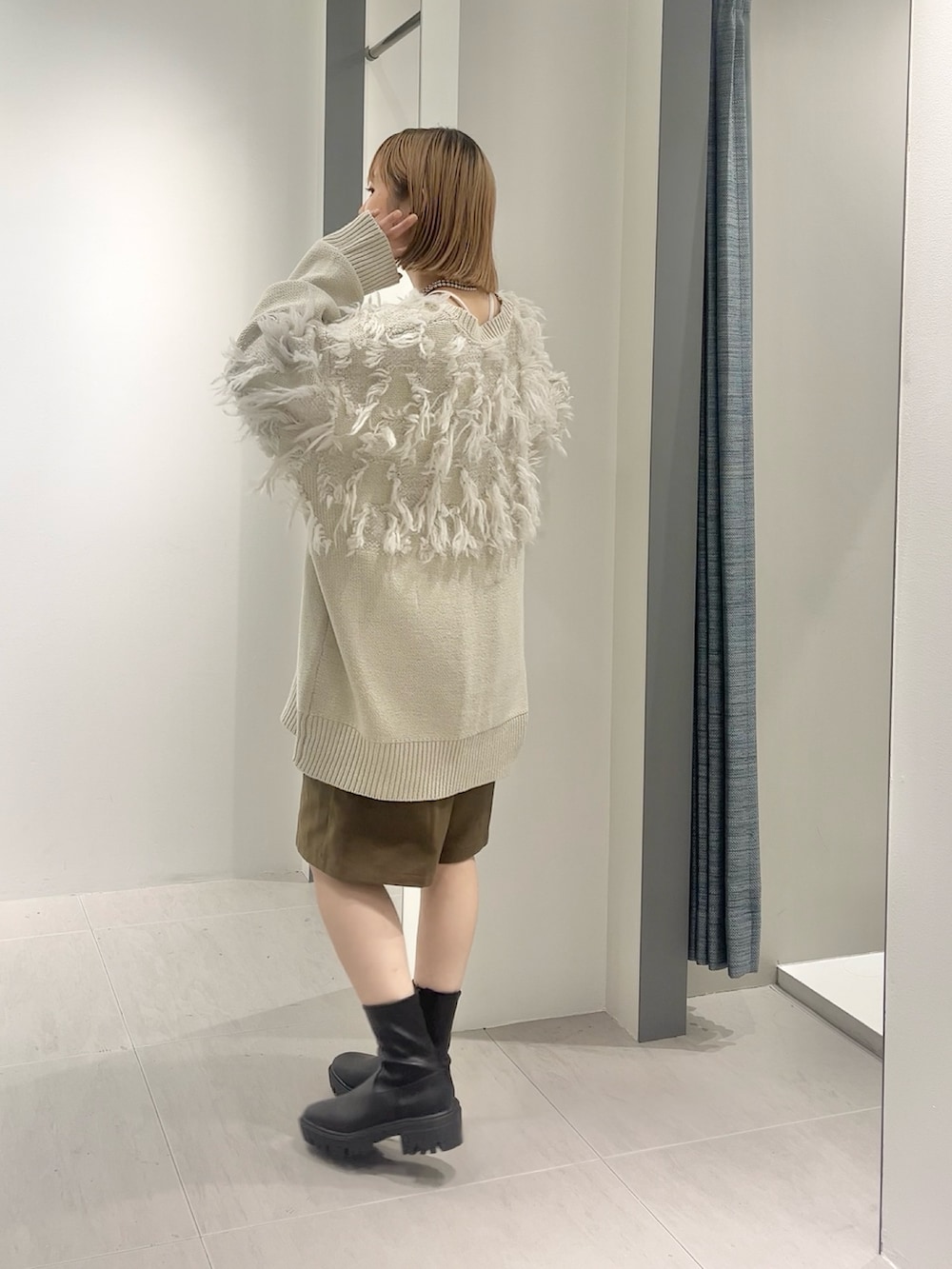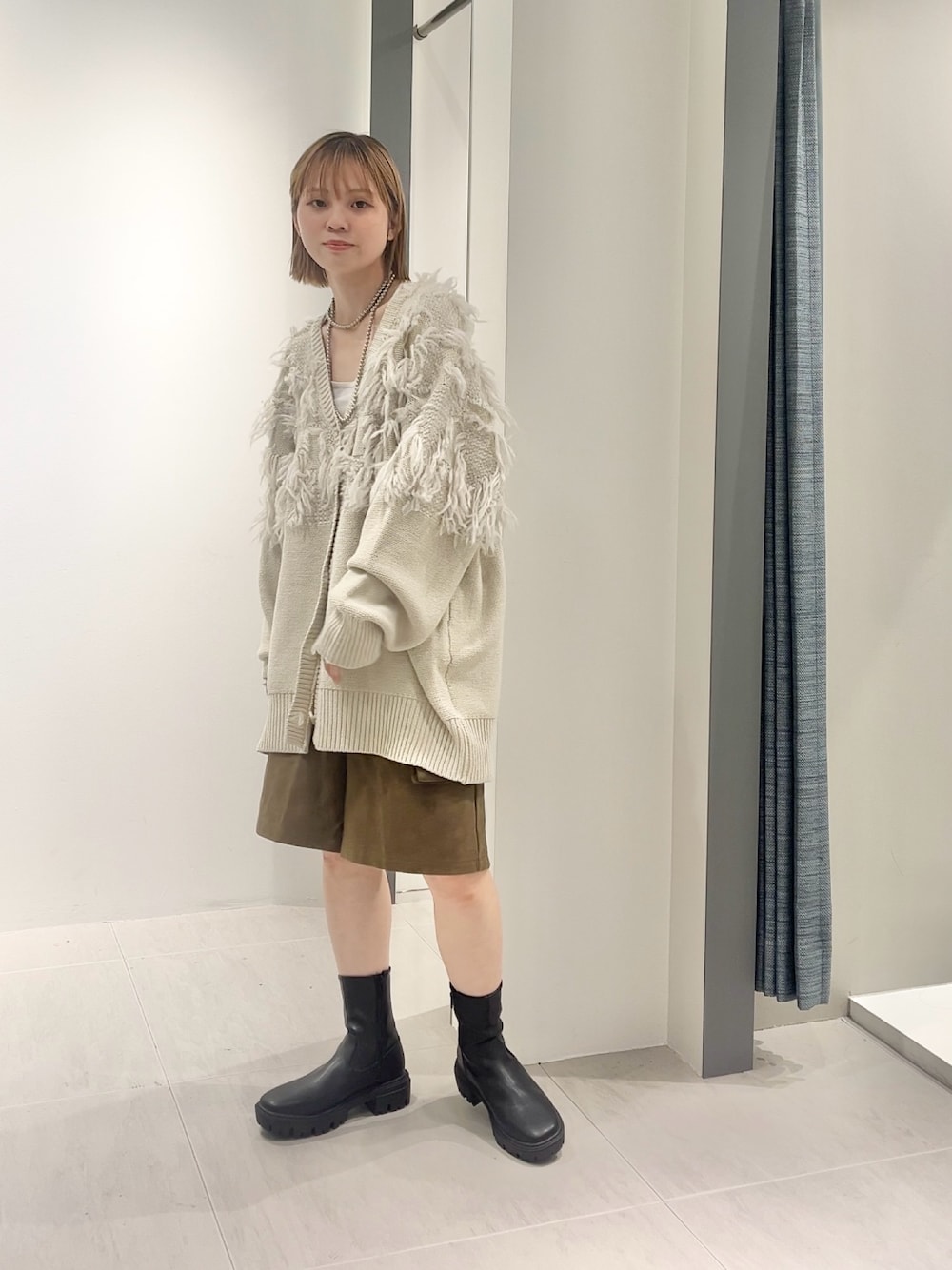 定番にハーフパンツ×ブーツ合わせで◎
