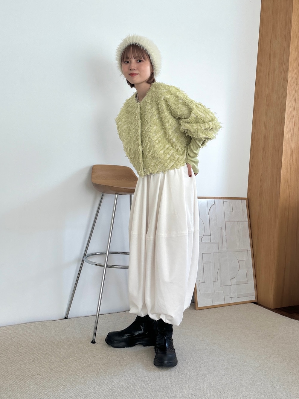 ショート丈のトップスなのでワイドパンツとの合わせも◎
