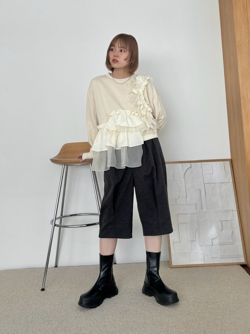 シンプルながら1枚で着映えするトップスなのでボトムを選ばず合わせていただけます!
