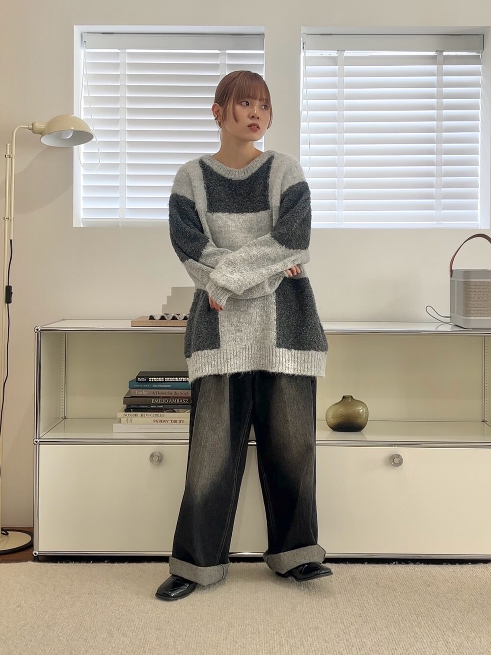 ワイドデニムでゆるゆるに合わせましたが、シューズを少しすっきりとしたもので合わせることでバランス◎