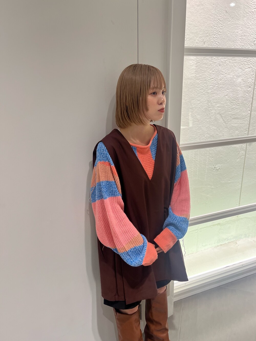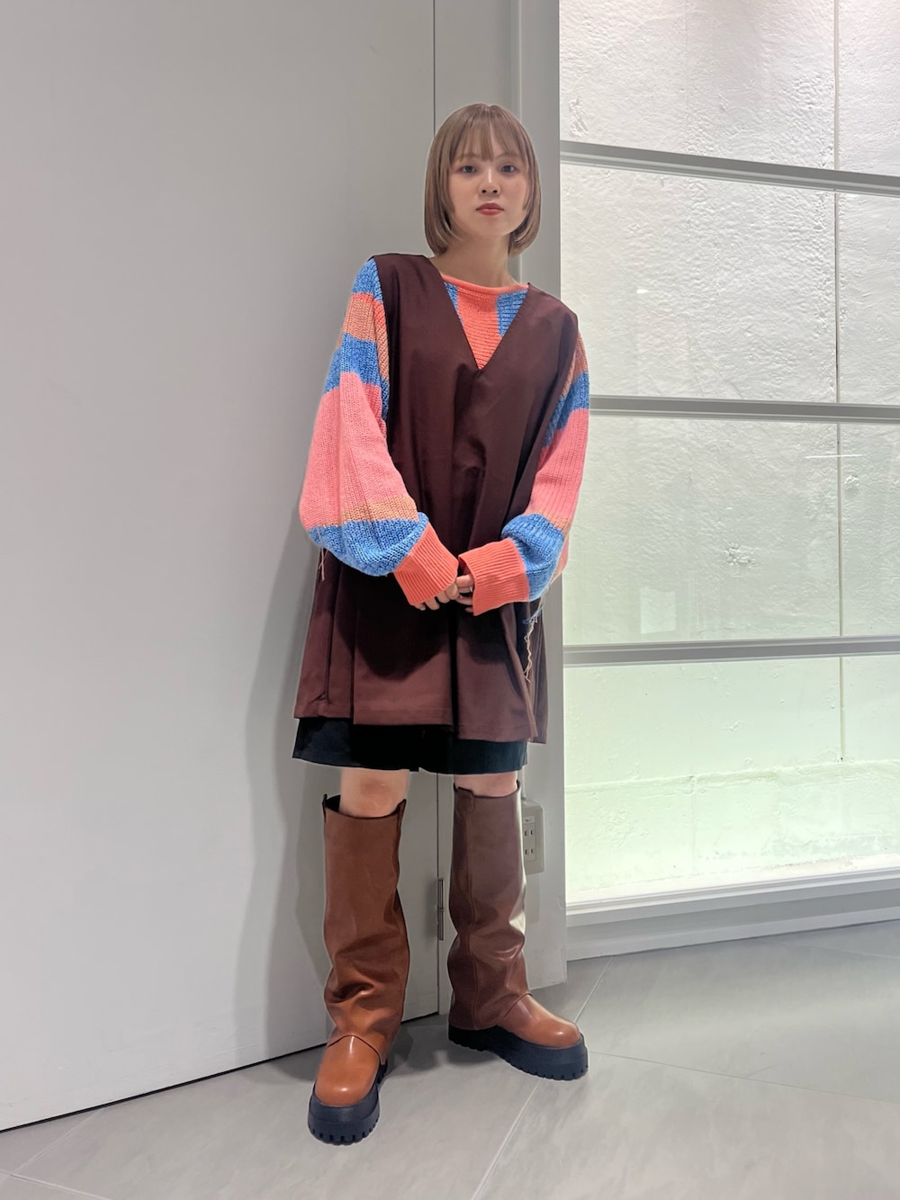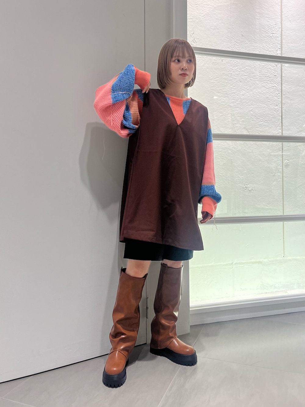 ニットを入れてもすっきりと着ていただける万能ワンピースです^^