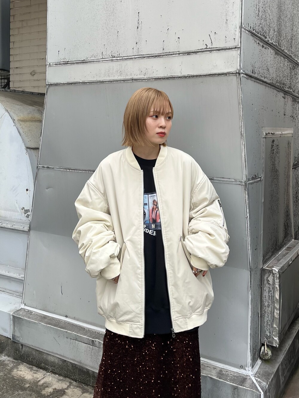 ギャザーやポケットのステッチが可愛いMA-1(2枚目)も着用したときのフォルムがたまらないです…🩵