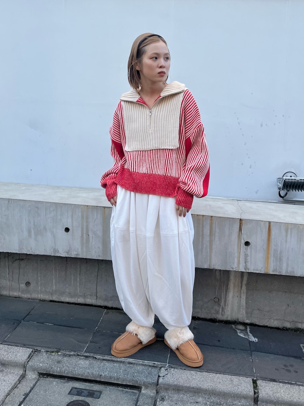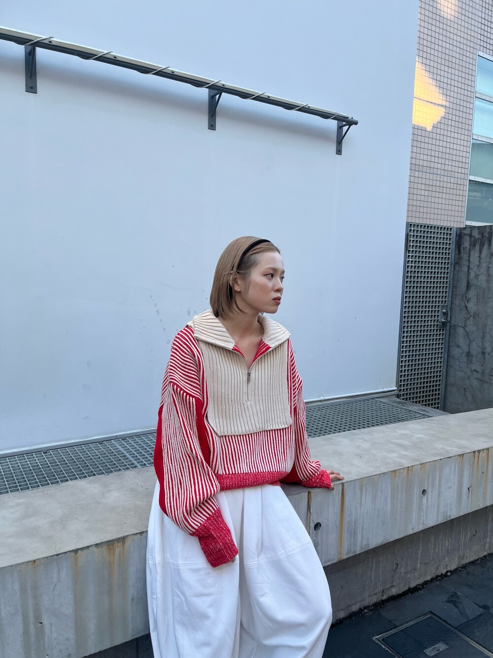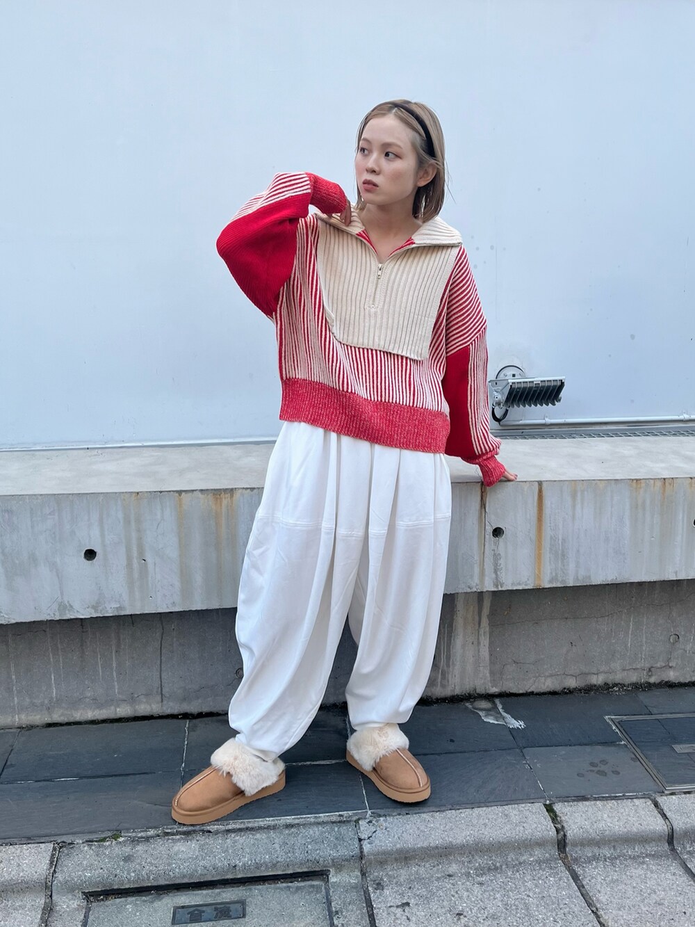 キャッチーなカラーのREDはこれからの時期アウターの中からちらっと見えるのも可愛いですよ〜!
